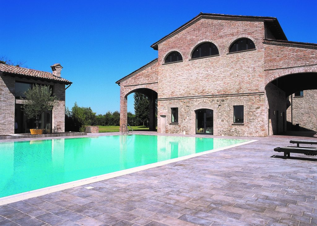 Panaria Ceramica è intervenuta di recente in un’opera di ristrutturazione di un antico cascinale dei primi del novecento situato nella campagna del parmense, inserendo nello specifico delle superfici in grès porcellanato nella zona esterna. Circondata da tanto verde, distese immense di ulivi e lontana dal caos cittadino, per questa dimora privata sono state utilizzate lastre in gres della collezione Pietre di Fanes adatte per definire l’ampio cortile esterno con piscina e solarium e creare un continuum stilistico tra presente e futuro.