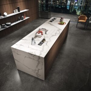 Dimensioni 160×320 cm – Marble: Calacatta Oro, Carrara Venato, Statuario White, Pietra Grey, Royal Brown disponibili nelle finiture Lux e Soft; Stone: Lightstone, Basaltina, Ardesia disponibili nella finitura Naturale; Concrete: Concrete Light Grey, Concrete Grey disponibili nella finitura Naturale.