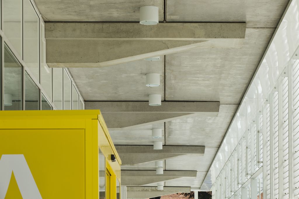 Le mensole in cemento armato di sostegno al primo livello del corpo A (foto di Giuseppe Giudici)
