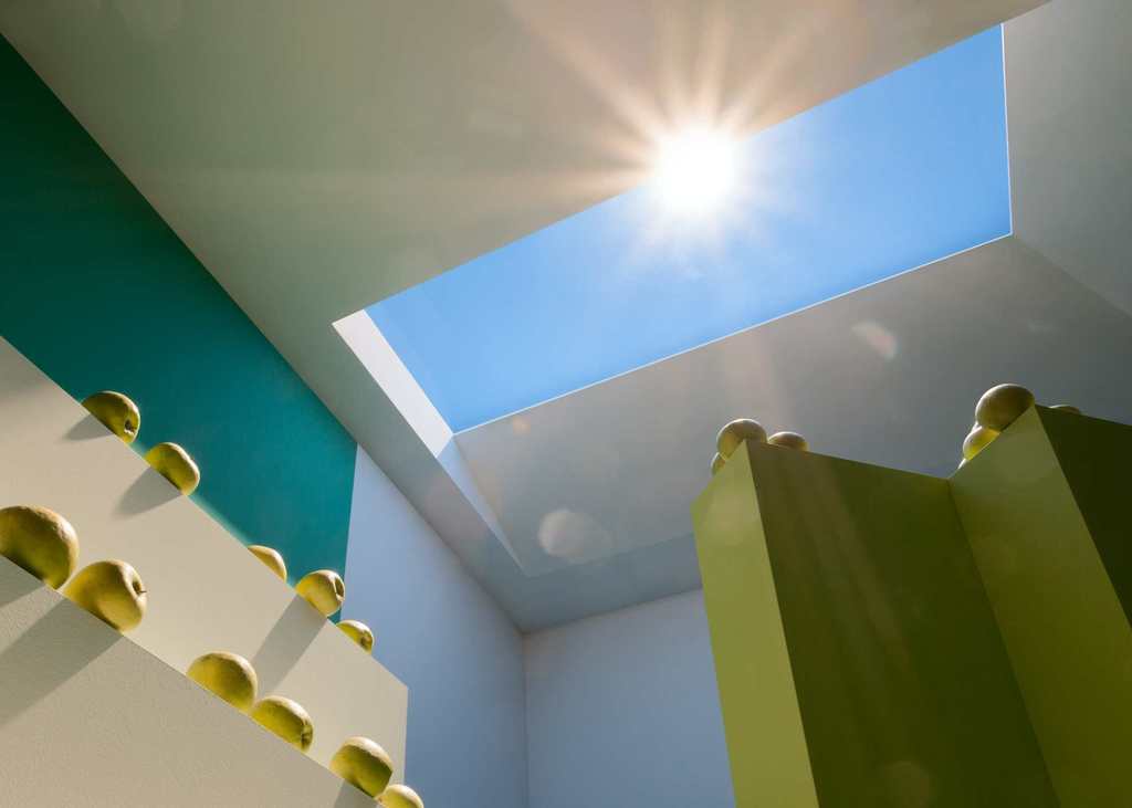 Tre gli elementi fondamentali su cui si basa l’invenzione: materiali nanostrutturati in grado, in pochi millimetri, di realizzare i processi diffusivi che avvengono nell’atmosfera, un sistema a Led di ultimissima generazione che ricrea le caratteristiche spettrali della luce solare e, infine, sofisticati sistemi di imaging optics che riproducono la profondità del cielo e il sole all’infinito. Il risultato finale è un effetto che crea le stesse condizioni dell’esposizione solare, dal colore alla saturazione alla qualità della luce. Guardando dentro la cornice di CoeLux, installabile tra il soffitto e il controsoffitto, vedremo così un cielo blu con tre possibili inclinazioni solari: mediterranea, tropicale, nordeuropea.