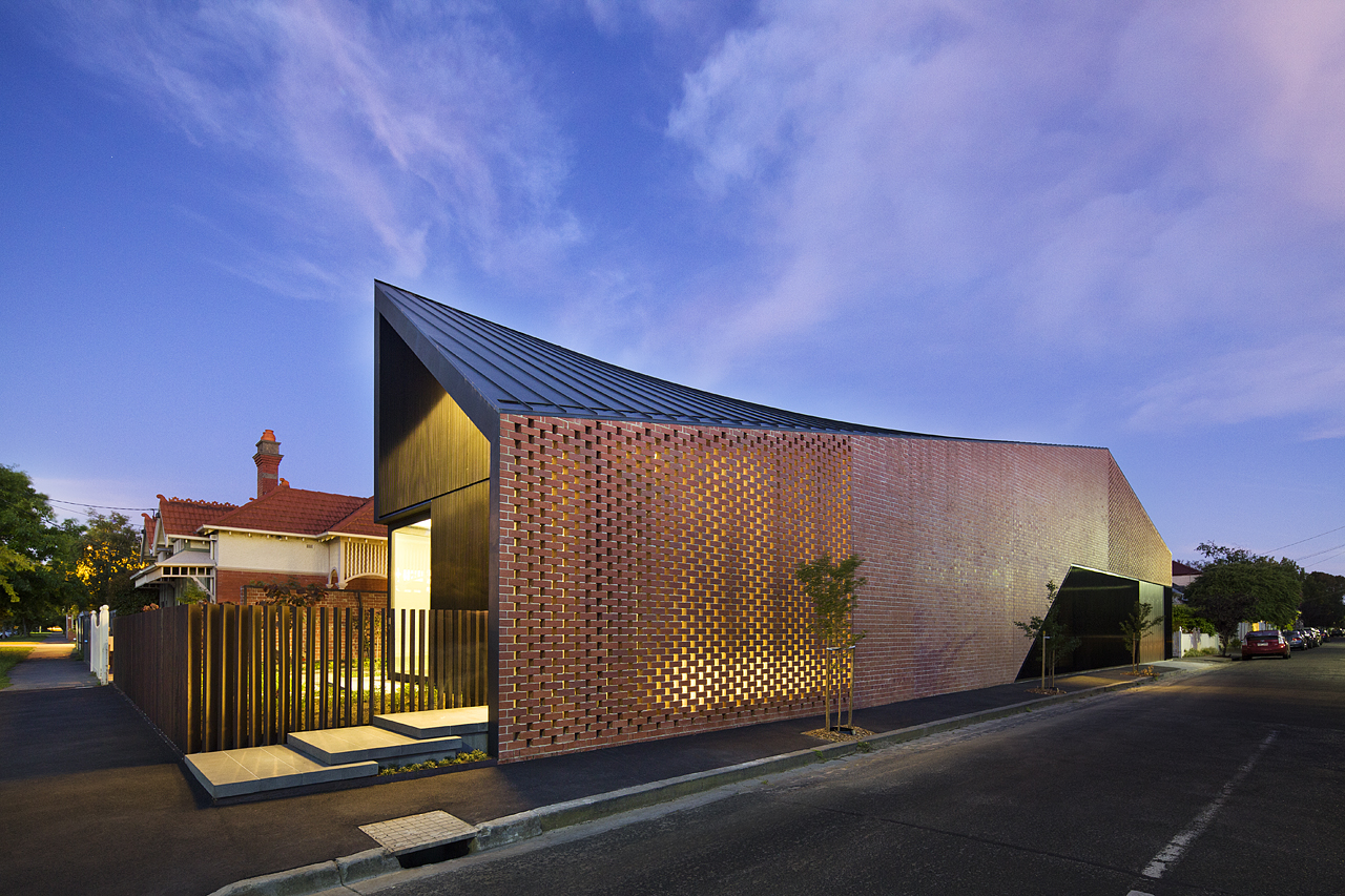 La risposta progettuale di Jackson Clements Burrows Architects si impegna a recuperare il rapporto con il contesto, andando a completare il «quarto angolo» dell’intersezione viaria e approfondendo nella forma architettonica il rapporto tra gli spazi privati interni e quelli esterni. Harold Street Residence si colloca quindi strategicamente lungo il bordo di Neville Street, specchiando efficacemente gli altri tre lati dell’incrocio, e permettendo di riservare sulla parte settentrionale del lotto, più intima e privata, un’area per il giardino. Qui la facciata nord dell’edificio si eleva come un’interfaccia scultorea tra il giardino e la zona giorno, creando un variegato dialogo tra interno ed esterno.