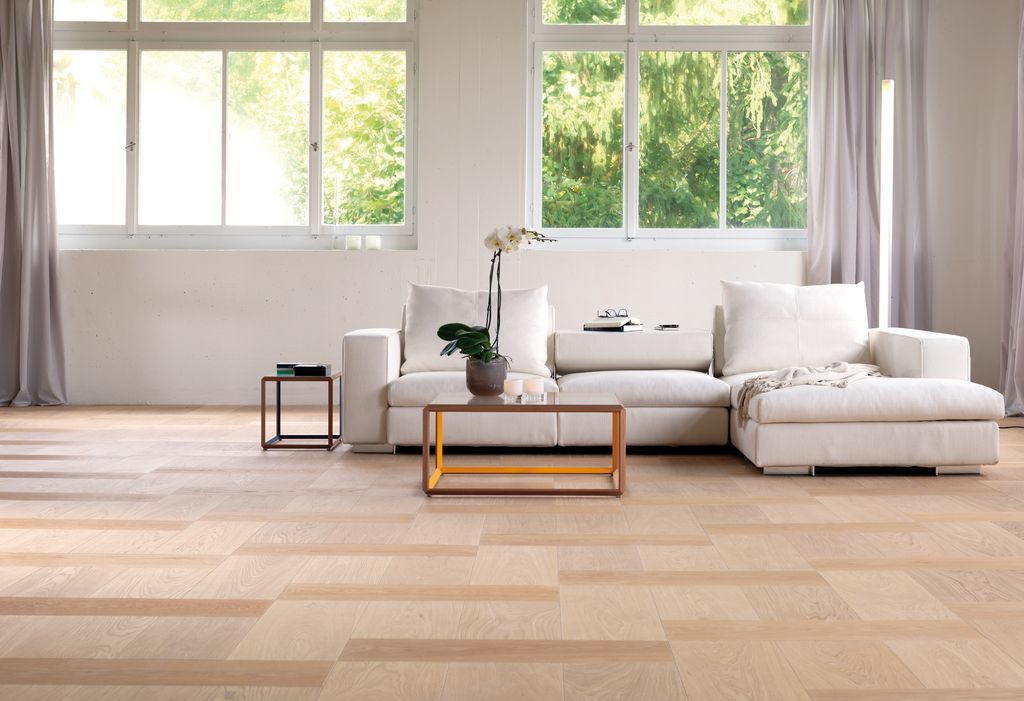 Con le nuove plance in rovere della linea Formpark, Bauwerk Parquet offre nuove e originali combinazioni di posa. Due i formati: larghi entrambi 260 mm ma lunghi 520 o 780 mm. Le proporzioni dei listoni – prefiniti a due strati – permettono un’installazione sia parallela che perpendicolare; è quindi davvero facile personalizzare il pavimento alternando formati e orientamento delle tavole.