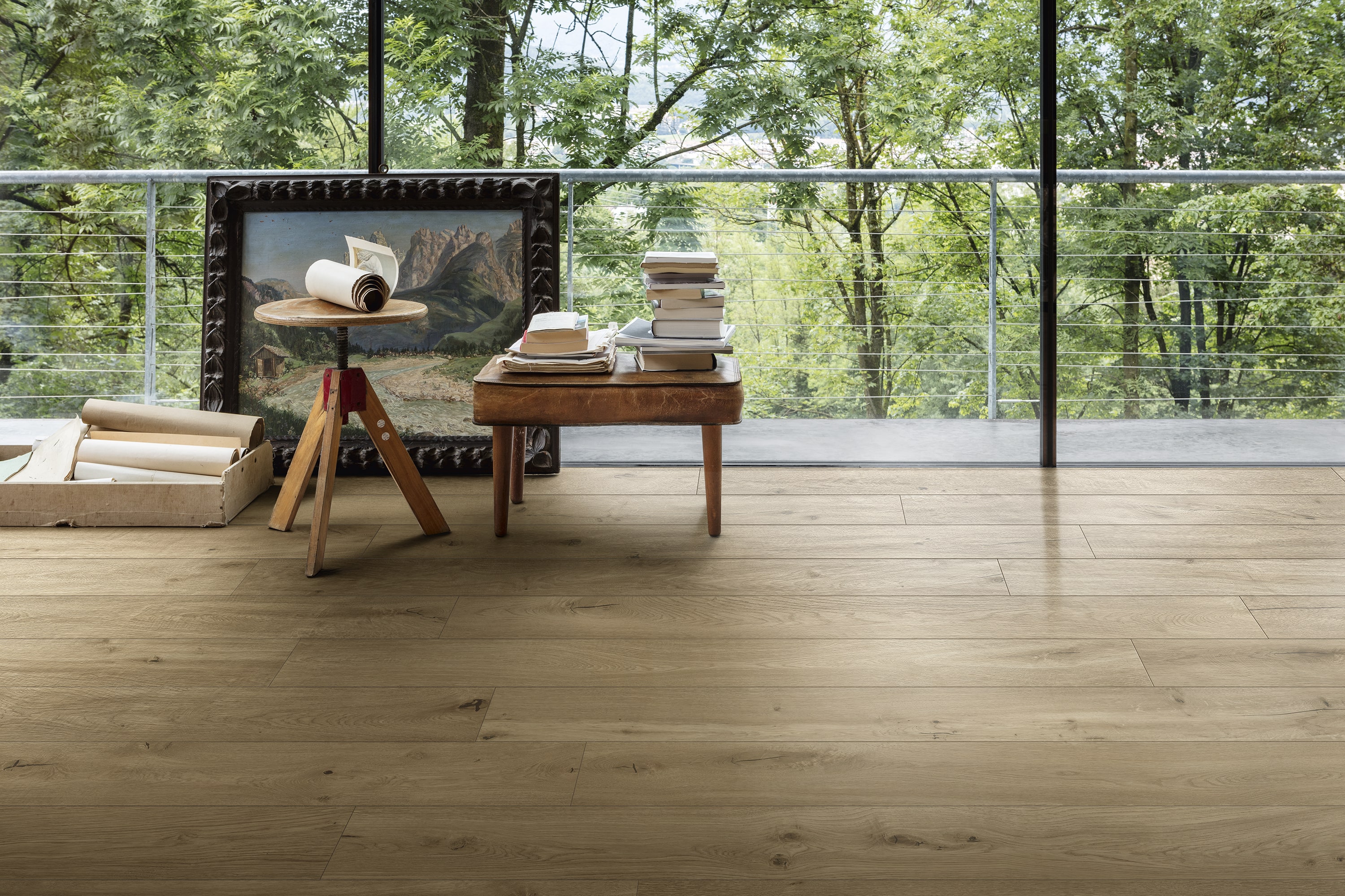La linea si ispira alle grandi tavelle di rovere massello che presentano nodi, imperfezioni e stuccature. Realizzata nel grande formato 22,5 x 180 cm e in 20×120 cm, Vero è declinata nei colori Natural, Rovere, Castagno e Quercia.