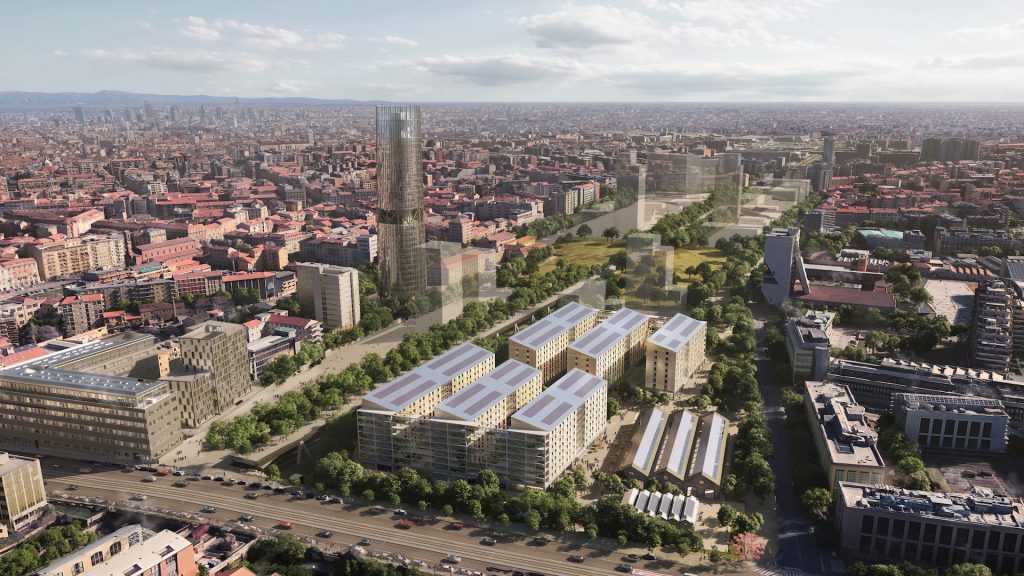 L’idea progettuale è creare un ecosistema vivace, composto di abitazione studentesche, residenze, co-working, servizi privati di interesse pubblico e spazi pubblici. Un luogo di scambio e di incontro, capace di attrarre giovani, imprenditori e micro-aziende. Gli edifici lato parco e ferrovia nell’area della piazza olimpica saranno destinati a residenza libera e agevolata.