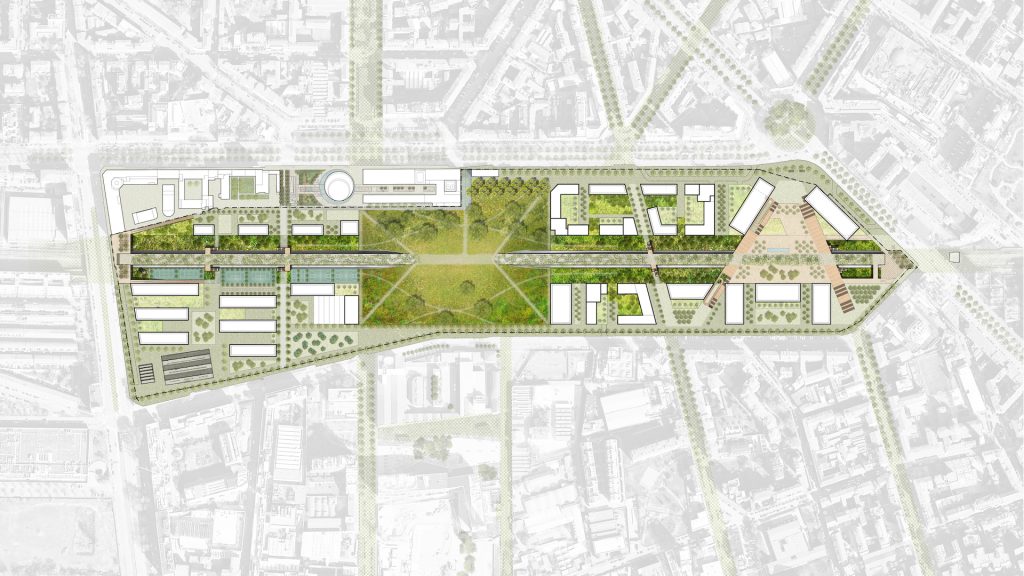 Nell’aggiornamento del masterplan proposto allora dal team vincitore del concorso (Outcomist, Diller Scofidio + Renfro, PLP Architecture, Carlo Ratti Associati e Arup) vengono rafforzati gli elementi distintivi dello spazio pubblico: il parco centrale per garantire la continuità urbana, le connessioni pedonali e ciclabili, i corridoi verdi, le piazze pubbliche e la foresta sospesa sopra il tracciato ferroviario esistente.