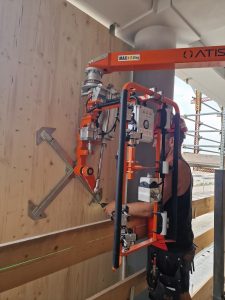 «Per la prima volta in edilizia abbiamo applicato il montaggio automatizzato di componenti prodotti in stabilimento. Abbiamo cioè utilizzato un manipolatore industriale, una macchina automatizzata, in corso di brevettazione, che collabora con un nostro operatore nel posizionamento dei pannelli di tamponamento XLam. Un metodo di lavoro impiegato nell’automotive, che per la prima volta utilizziamo, ripeto con successo, in un cantiere italiano».