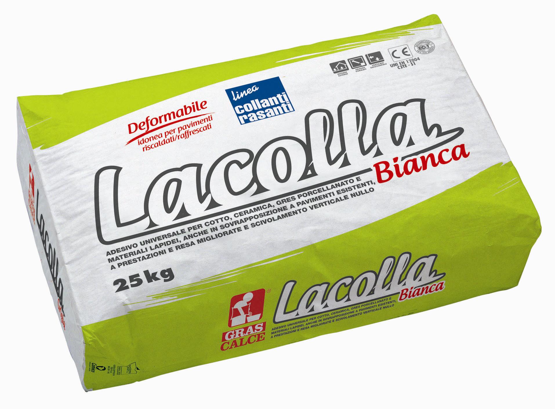 Si chiama Lacolla l’ultima proposta di Gras Calce, azienda di Trezzo sull’Adda (Mi), un adesivo cementizio estremamente performante e con una resa migliorata disponibile nelle colorazioni bianca e grigia. Dotato di caratteristiche meccaniche migliorate, resistente allo scivolamento e con tempo aperto allungato (C2TE) secondo Uni En 12004, deformabile (S1) secondo Uni En 12002, Lacolla può essere utilizzata per la posa di piastrelle di grande formato, garantendo l’adesione su tutti i supporti, anche in sovrapposizione a pavimenti finiti esistenti.