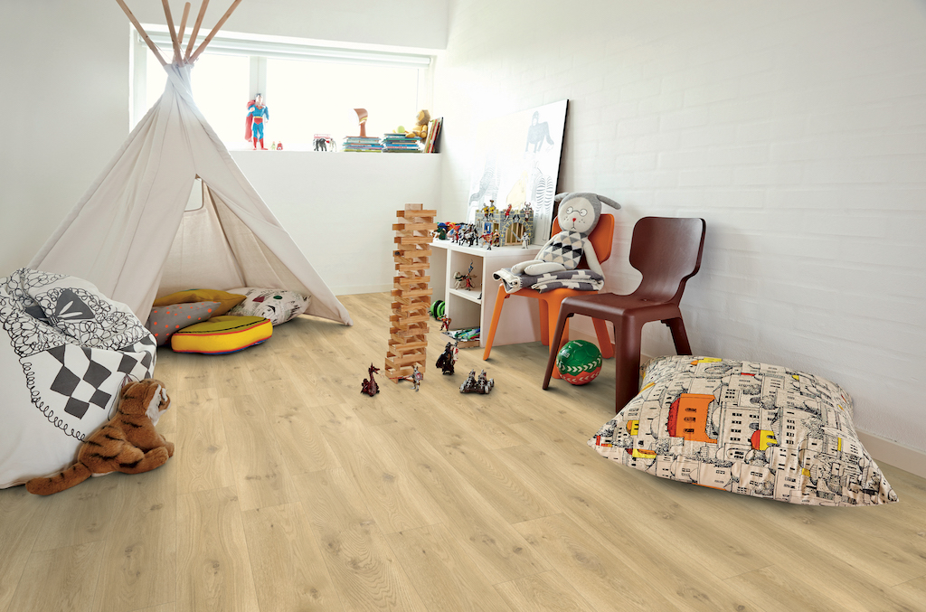 Pergo ha sviluppato i pavimenti in vinile Flex, che offrono quella piacevole sensazione di morbidezza al tatto che invita a camminare a piedi scalzi e riducono i suoni e i rumori ed è ideale soprattutto nella cameretta dei bambini.
