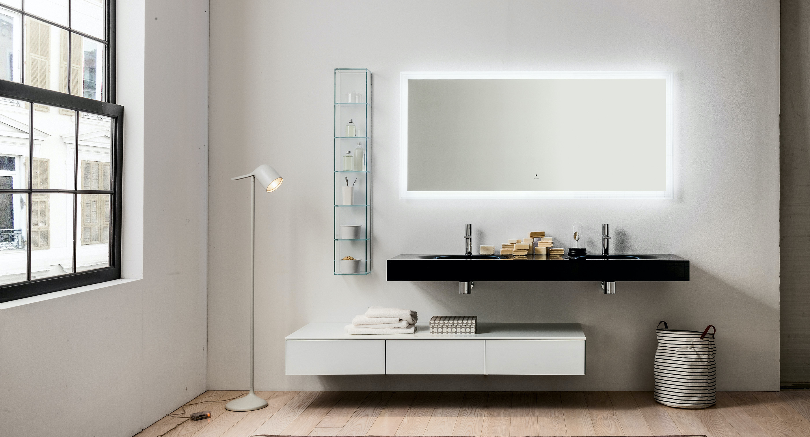 Disegnata da Anita Brotto, la collezione Regolo si caratterizza per la sua libertà progettuale non solo in termini di dimensioni, ma anche di scelta dei lavabi e negli abbinamenti con altri mobili.