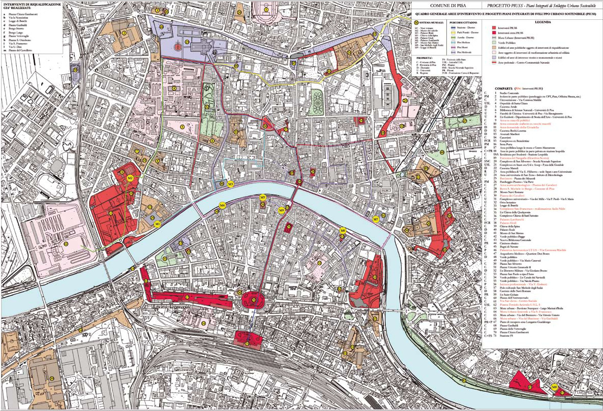 Nella variante sono state ribadite le previsioni riguardanti i parchi urbani (San Giusto-Cittadella-Cisanello-Piagge) ed è stata cancellata l’ipotesi di una nuova scuola per il complesso Marchesi visto che il nuovo istituto verrà edificato sul posto dell’attuale complesso (con lavori di demolizione-ricostruzione). Per quanto concerne le aree ex industriali segnaliamo una nuova definizione del piano strutturale d’area che comprenderà ambiti di destinazione d’uso all’insegna del recupero del patrimonio esistente.