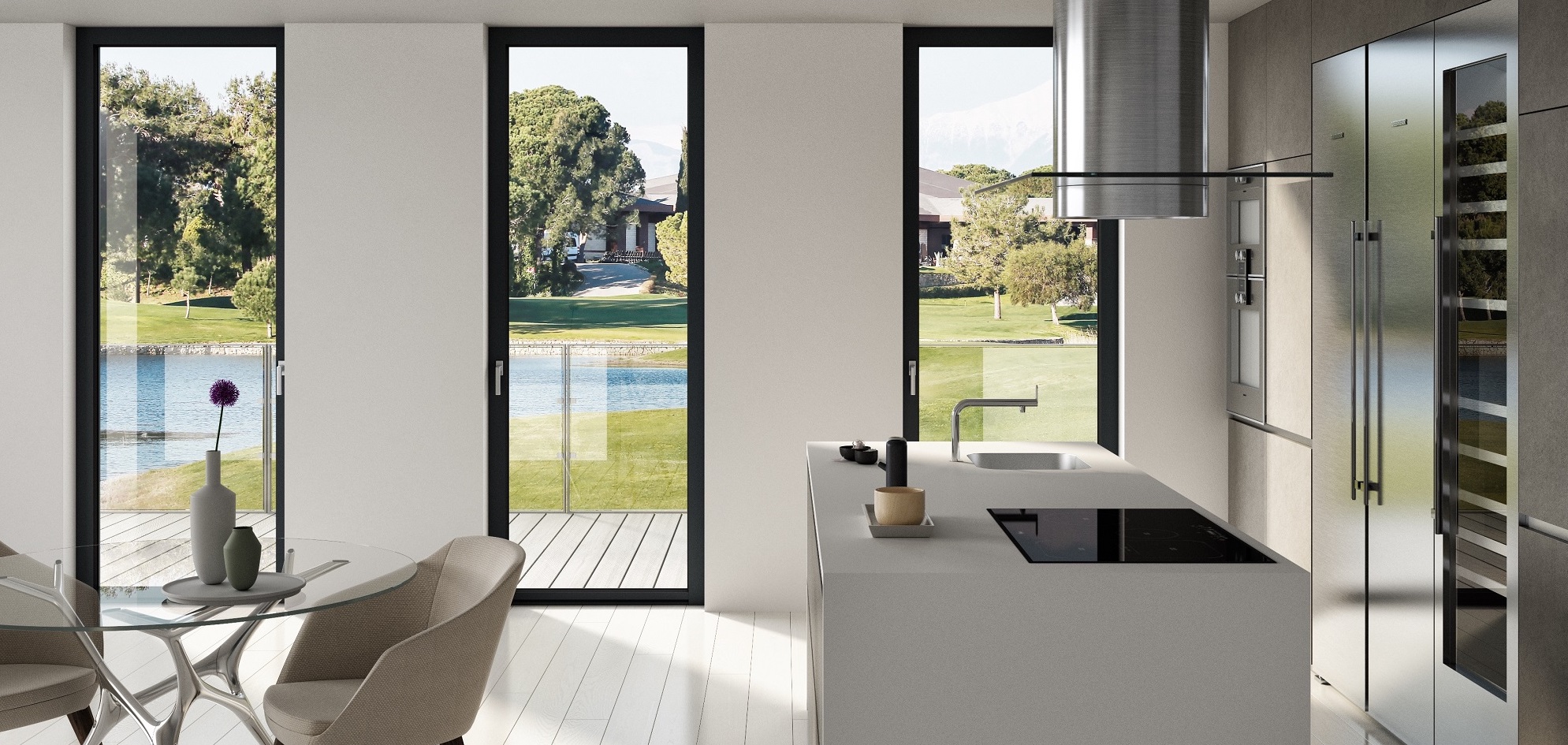 Come anticipato, l’obiettivo di questo serramento è esaltare la luce naturale. E come farlo se non attraverso il profilo ridotto – nodo centrale largo appena 76 mm – e la maggiore superficie vetrata? Con questo infisso dalle linee pulite ed eleganti, Oknoplast ha permesso di avere ambienti interni con più luce. Inoltre, per non guardare solo alla funzionalità, ma anche all’estetica, è possibile abbinare alla finestra una maniglia in tinta con il colore dell’infisso.