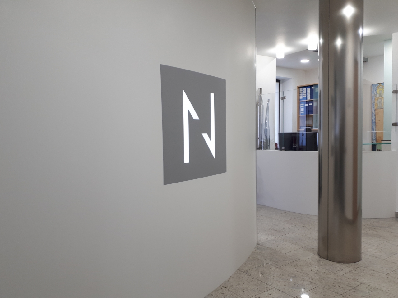 Le superfici in Corian agevolano il mantenimento di un ambiente pulito, dove i batteri non possano proliferare. Planit ha realizzato l’installazione nella reception di un retroilluminato accuratamente inserito in una parete in Corian