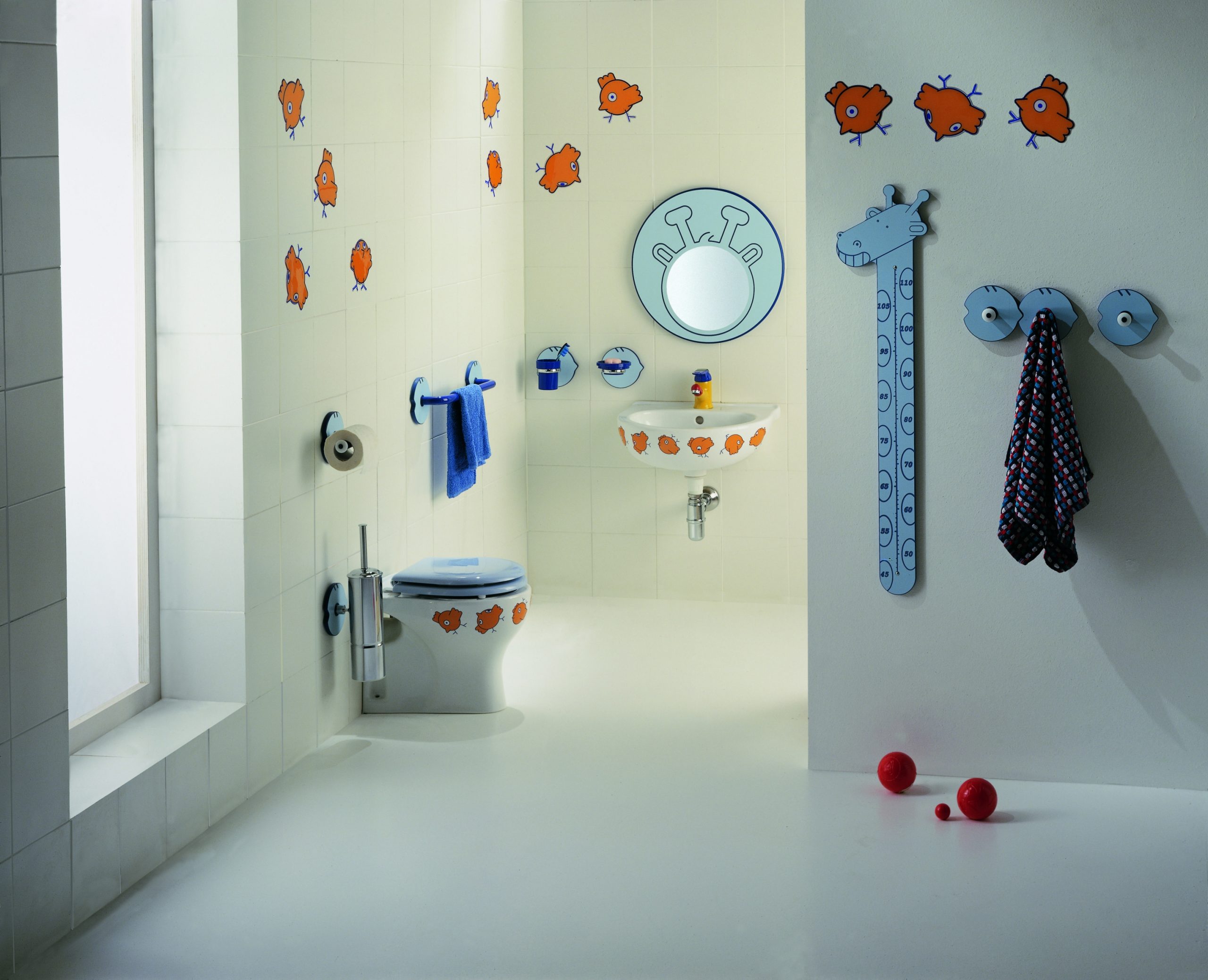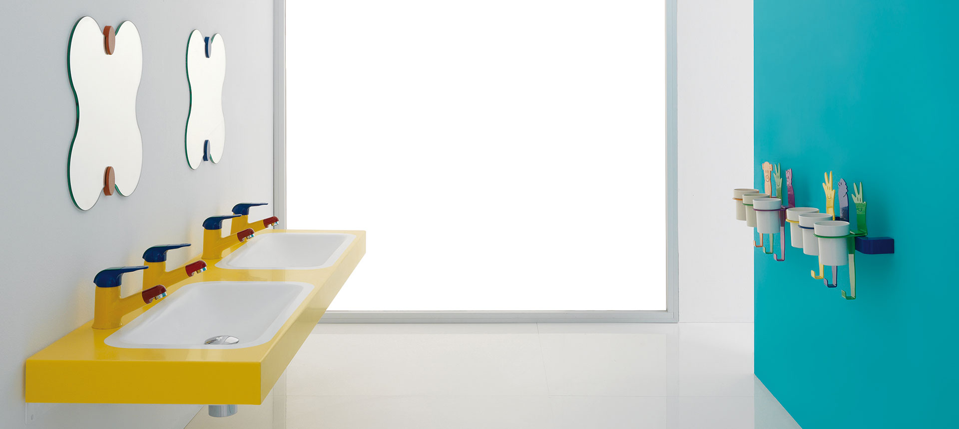La linea include soluzioni creative come Birdo, una serie di elementi celesti con un simpatico uccellino, e Milk, mini-consolle in pietra acrilica antibatterica con inserti colorati. Millepiedi, appendiabiti snodati e colorati, e Jungle, una collezione di accessori con personaggi giocosi, completano l’offerta, insieme a miscelatori monocomando e lavabi decorati.