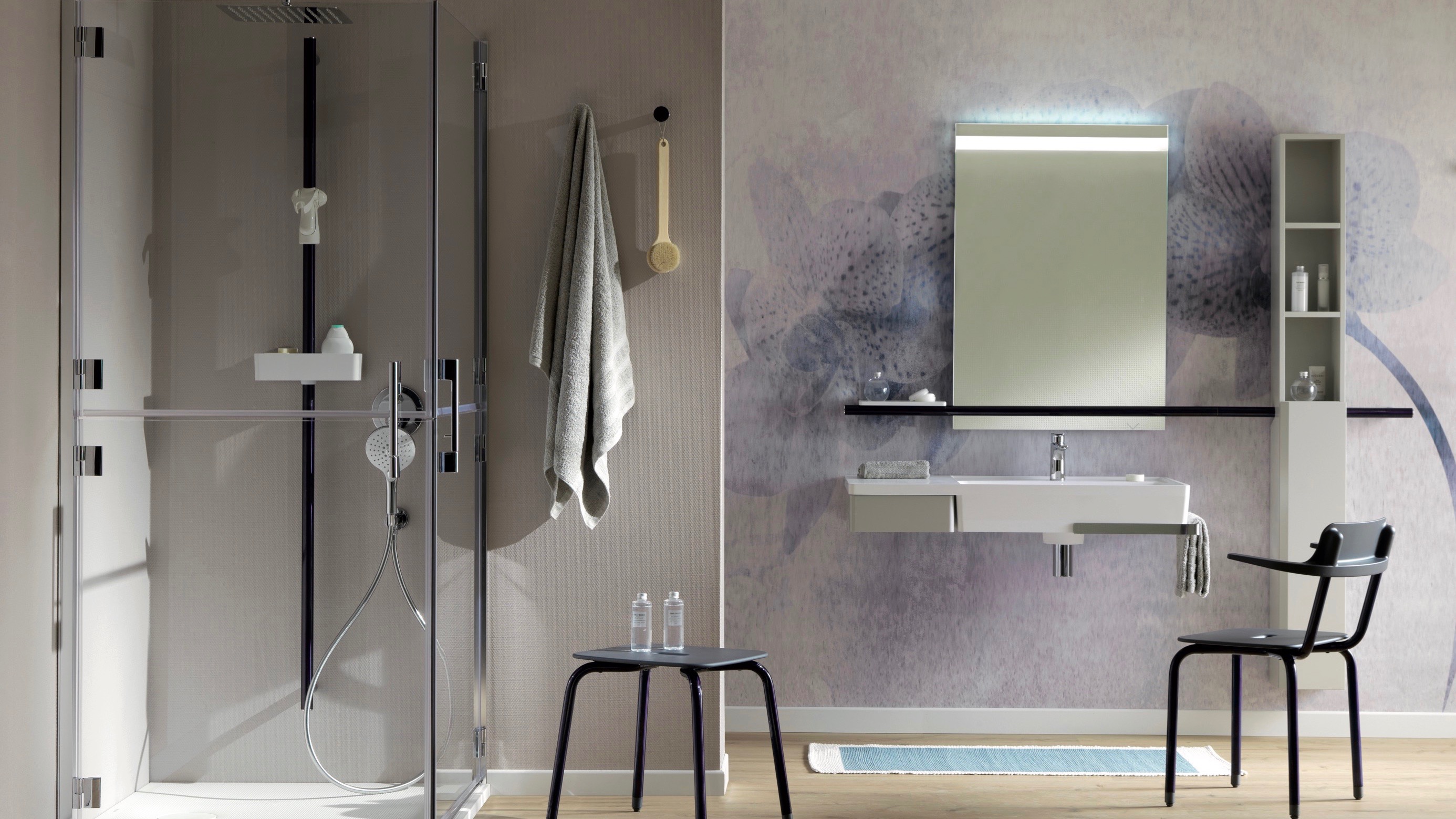 Il momento della doccia è rilassante per antonomasia. Al relax deve affiancarsi anche la sicurezza: del resto il rischio di scivolare stando in piedi su una superficie come il piatto doccia può essere un rischio per chiunque. Tra gli accessori per una doccia “safety” troviamo le sedute e il box doccia ad ante sdoppiabili della collezione Hug di Ponte Giulio, completate dalla colonna doccia di sicurezza Solo.