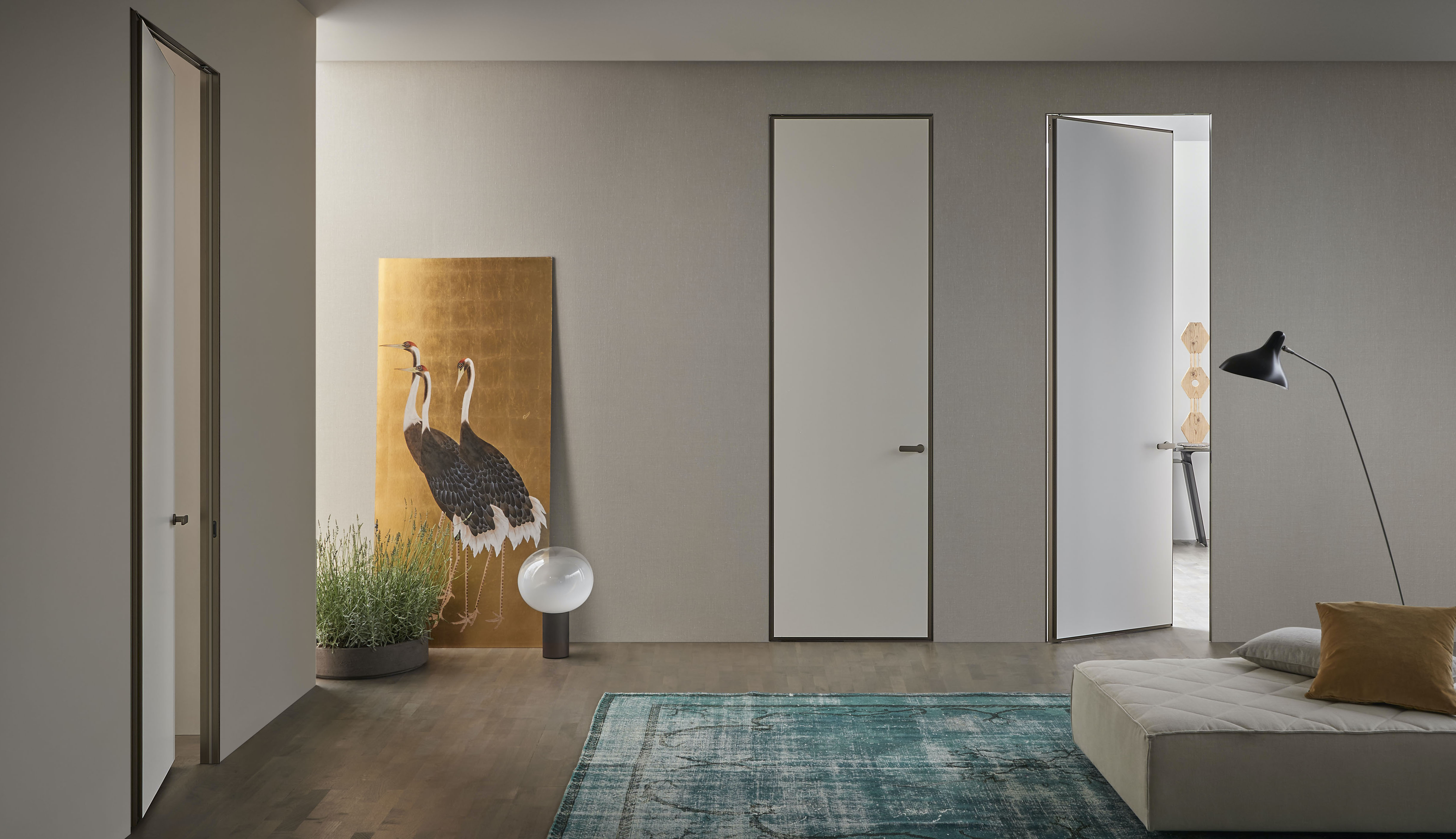Altaj è concepita per andare oltre il minimalismo del classico modello filo muro tanto che non scompare nella parete, ma è anzi evidenziata dal profilo metallico che incornicia l’anta e ne esalta la finitura. L’aspetto decorativo della porta emerge così dalla parete sottolineandone il significato simbolico di attraversamento, di passaggio.