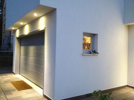 Hörmann ha partecipato alla realizzazione con il portone sezionale Hörmann Lpu 40 con finitura silkgrain (effetto seta) greca media, colore Ral 9006, ampio 4.000 x 2.250 millimetri e dotato di motorizzazione Supramatic E. I componenti del portone che chiude l’autorimessa sono realizzati con elementi d’acciaio a parete singola e doppi; in quest’ultimo caso isolati con schiumatura isolante in poliuretano, protetti con mano di fondo a base di poliestere. I portoni sezionali Lpu 40 possono essere forniti con larghezza fino a 10 metri e altezze modulari variabili da 1.875 millimetri fino a 3.000 millimetri (anche con altezze intermedie a richiesta), dotati di finestre, oblò e infissi a cassettoni e di feritoie di areazione nella guarnizione a pavimento o in rete stirata.