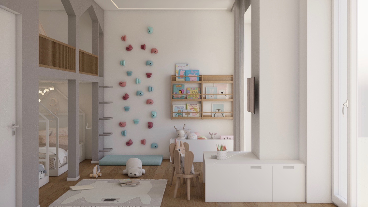 Durante e dopo la pandemia abbiamo sviluppato un nuovo approccio alla vita all’interno delle nostre case. Sempre di più si desiderano abitazioni con un piccolo spazio verde per potersi godere qualche momento di pace e di respiro all’aperto. Per chi però non ha questa fortuna nascono quindi dei nuovi sistemi per sfruttare al meglio anche gli interni. StudioS sperimenta le pareti attrezzate, strumenti di gioco ma anche e soprattutto di sviluppo motorio e cognitivo che aiutano i più piccoli a crescere anche quando non stanno esplorando il mondo esterno.