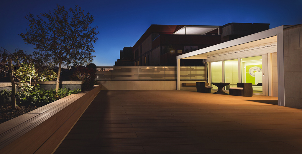 Eco-sostenibilità, è questo il tema centrale che ha guidato lo Studio Spagna nell’allestimento degli spazi outdoor di un attico in un complesso architettonico risalente al dopo guerra, situato a Milano, nelle vicinanze di Piazza Wagner. Un’ambiente in cui il benessere e la tranquillità dell’individuo vengono garantiti grazie all’adozione della domotica, un sistema di climatizzazione a pannelli radianti a soffitto e all’installazione della pergola bioclimatica Opera dell’azienda friulana Pratic. Opera, realizzata su misura, interamente in alluminio e installata a parete, è dotata di speciali lame frangisole che possono ruotare di 140 gradi, permettendo la naturale regolazione della luce così come il ricircolo dell’aria. Un beneficio che si traduce in comfort climatico percepibile sotto alla struttura, ma anche all’interno dell’abitazione, che guarda all’esterno attraverso una grande vetrata rivolta a sud-ovest. Ne consegue la riduzione al minimo dei consumi per la climatizzazione. Inoltre, grazie ai sensori pioggia che azionano automaticamente la completa chiusura delle lame, si può godere del piacere di vivere all’aria aperta con ogni condizione climatica e per tutto l’anno.