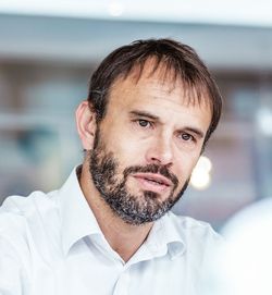 «L’opera inizia con la pianificazione dei lavori. Nella fase di montaggio abbiamo iniziato con quattro operai in cantiere, saliti poi a otto e nei periodi di punta addirittura a 16. La misurazione della sottostruttura, il montaggio delle mensole, degli angolari e del cappotto coibentante hanno richiesto parecchio tempo. È stato solo con la posa dei telai delle finestre che si è raggiunta la prima pietra miliare. Ciascuno aveva il proprio target, ogni installatore ha ricevuto un briefing specifico. Un piano, un lato, un giorno: questa la formula. Per orientarsi abbiamo utilizzato una linea verticale immaginaria, che ci ha dato sicurezza. La facciata di un edificio è come il volto di una persona. Vive, viene visto dagli altri, si evolve, si solca di rughe. Ad una facciata succede esattamente la stessa cosa».