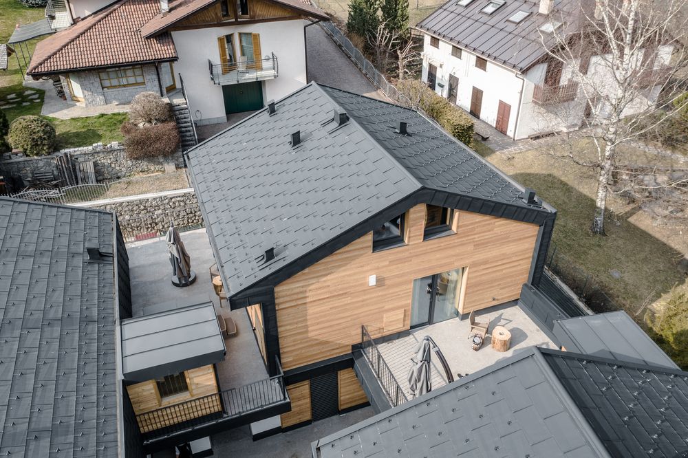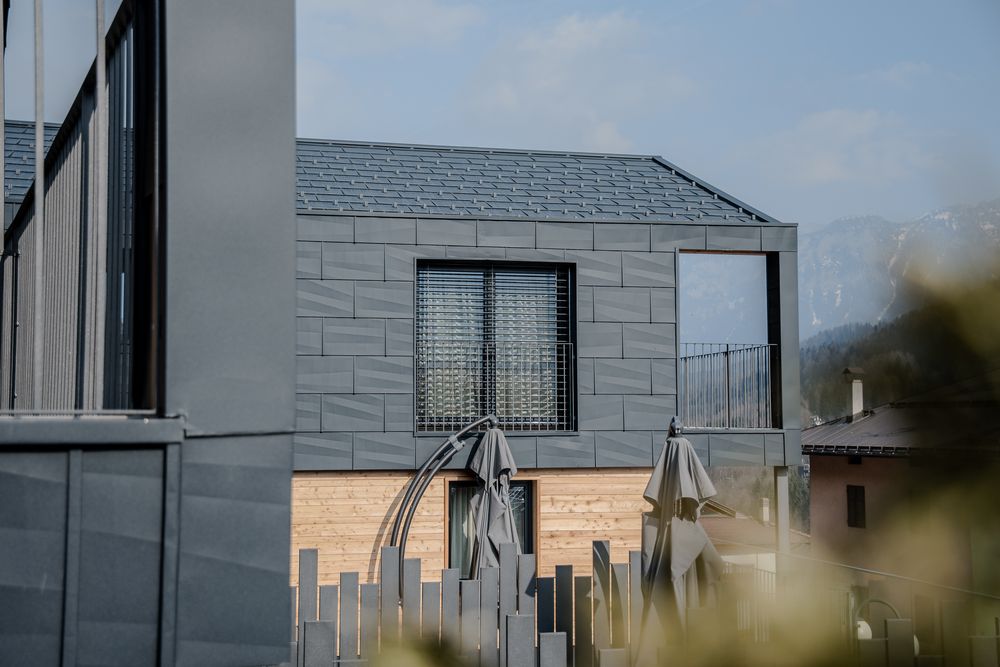 Data l’ubicazione montana del complesso, sono state valutate in modo accurato la resistenza dei rivestimenti Prefa a neve e gelo e, grazie agli ancoraggi di ogni elemento, anche un’ottima resistenza all’azione del vento. La tecnica dell’aggraffatura angolare conica protegge dalla pioggia battente e dall’umidità, assorbe le naturali dilatazioni del materiale e migliora le caratteristiche autopulenti delle facciate in alluminio.