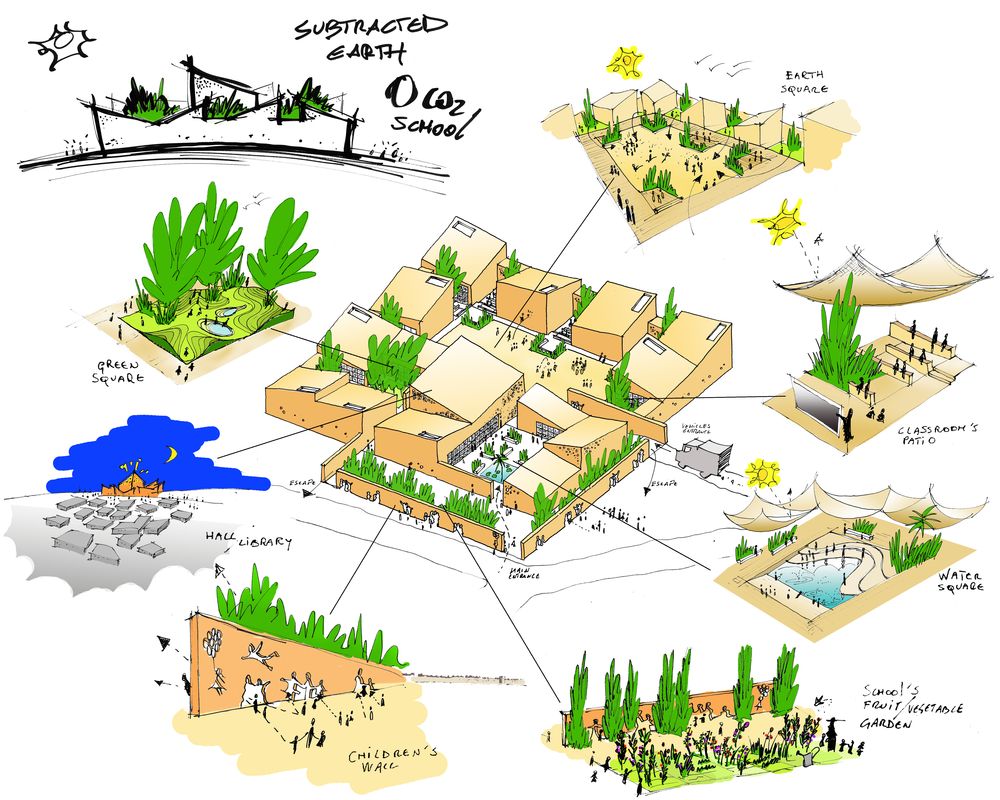 Architettura e tecnologie sostenibili, medaglia d’argento. Cristina Labianca, Alberto Menozzi, Ied, Istituto europeo di design, Torino, «Terra sottratta – Una scuola 0 CO2 per Gaza, Israele».