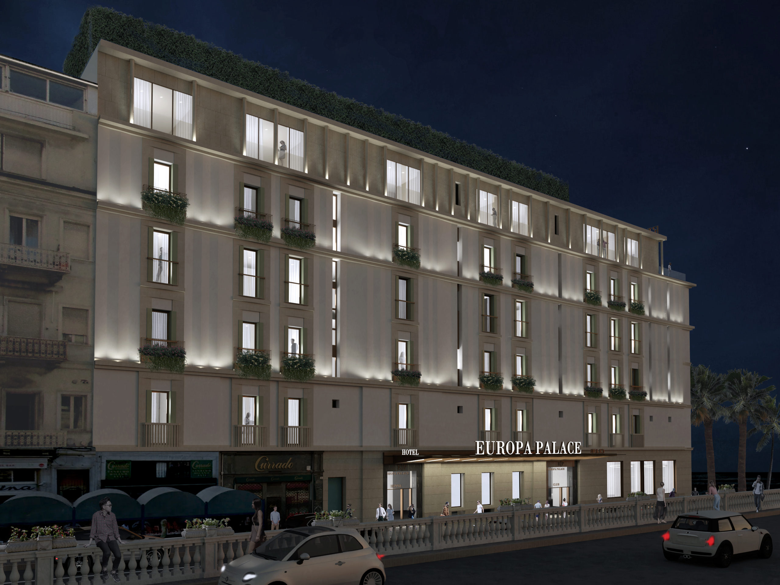 Il progetto del nuovo Europa Palace (così si chiamerà la nuova struttura ricettiva), che coinvolge una superficie di 5.600 mq, punta a rinnovare l’immagine della struttura senza discostarsi troppo dalla sua configurazione architettonica. I progettisti hanno quindi deciso di interpretare lo spirito originario dell’hotel declinandolo in modo contemporaneo: da un lato preservandone l’immagine storica dall’altro lato ridisegnando alcune facciate seguendo lo stile degli edifici storici delle vicine via Roma e via Matteotti.