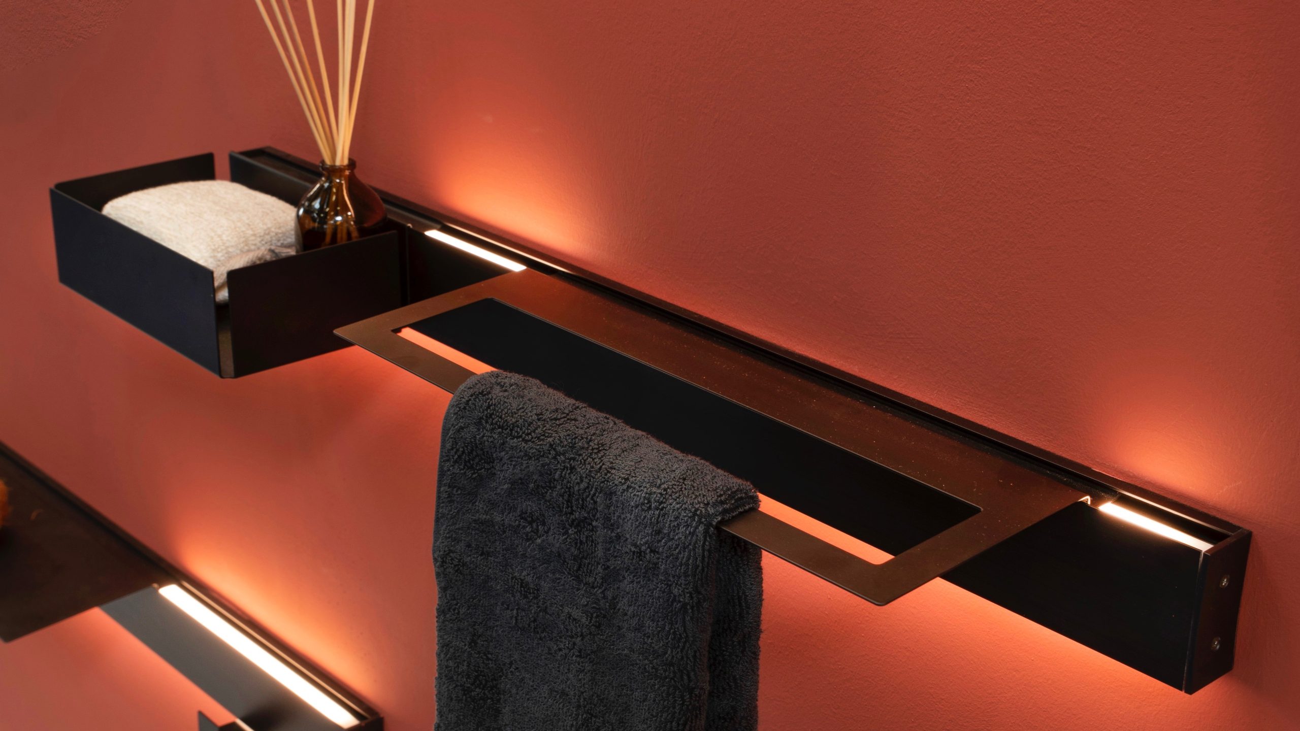 Bruna Rapisarda descrive così il concept alla base di Strip: «è un sistema lineare che nasce da una barra in alluminio illuminata, disponibile in varie dimensioni, che funge da supporto per tutti i complementi».
