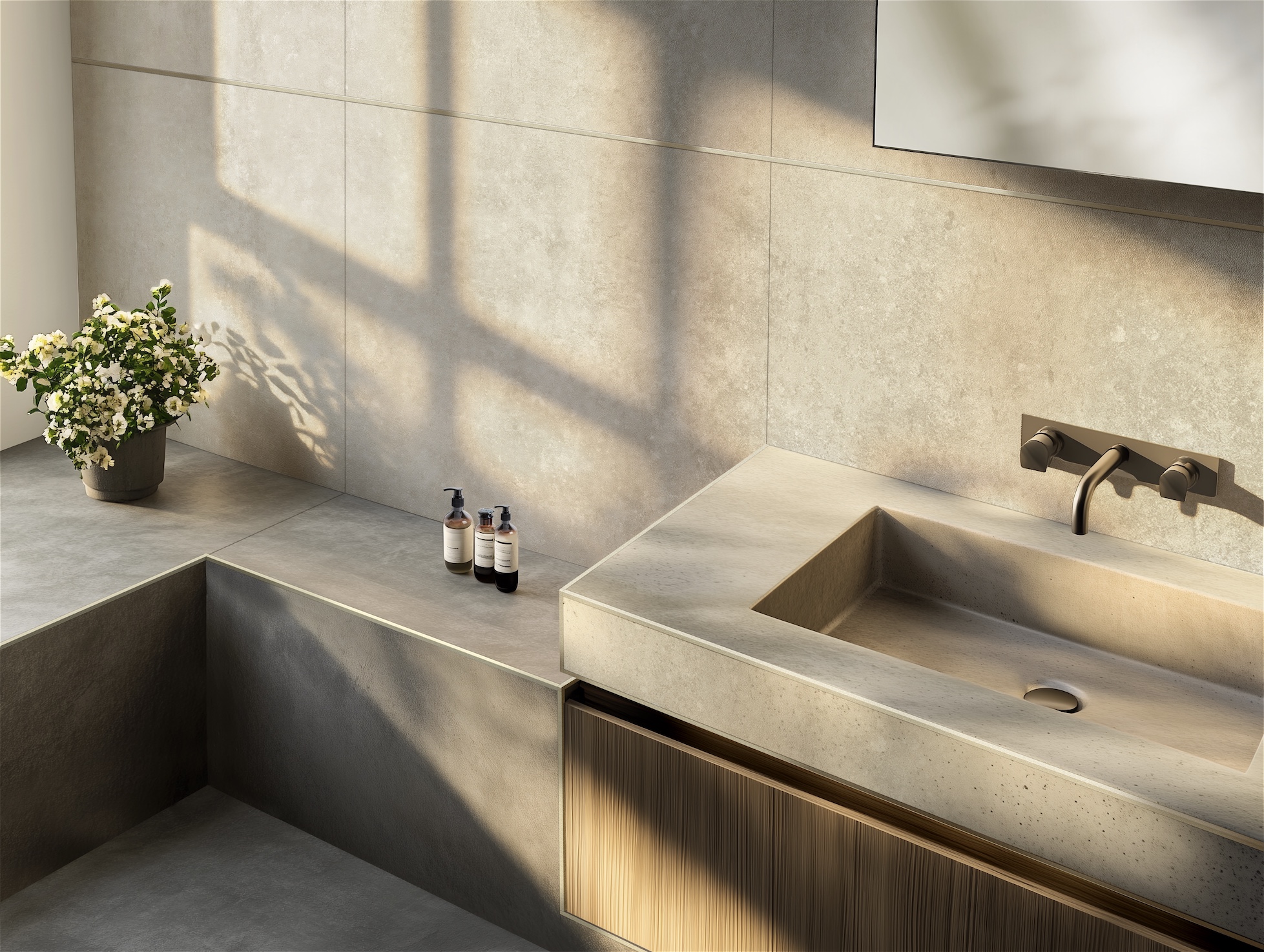 Nell’ambiente bagno, stone line valorizza le soluzioni per docce a filo pavimento della serie Proshower Profile e le mensole Proshelf, garantendo flessibilità progettuale. Le finiture impreziosiscono anche i profili protettivi per angoli esterni e chiusure perimetrali, come Projolly square, Projolly quart, Proterminal, prolistel p e Prolistel channel.