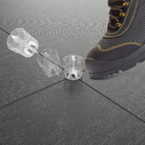 Al termine della posa, è sufficiente esercitare su di esso una leggera pressione o tirare un calcio nella direzione della fuga, per rimuovere il tirante che, riutilizzabile infinite volte, è unico per tutte le altezze e modelli.