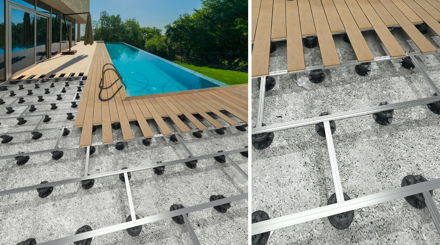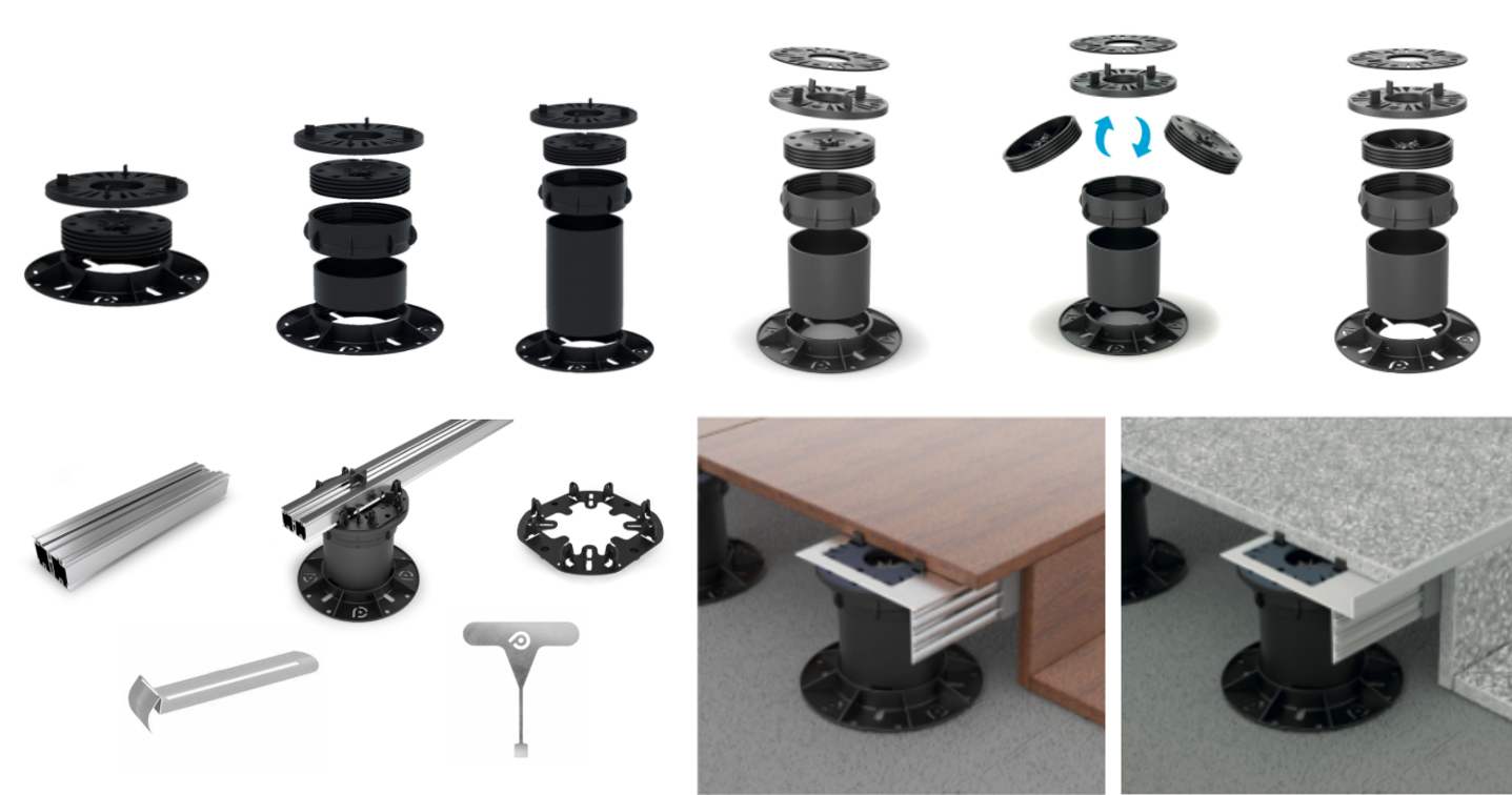 Sono due sistemi modulari che permettono di realizzare, negli ambienti outdoor, pavimenti flottanti con altezze variabili da 29 a 1000 mm in modo semplice e veloce, senza demolire o rimuovere quelli sottostanti e assicurando risultati perfetti e durevoli nel tempo.