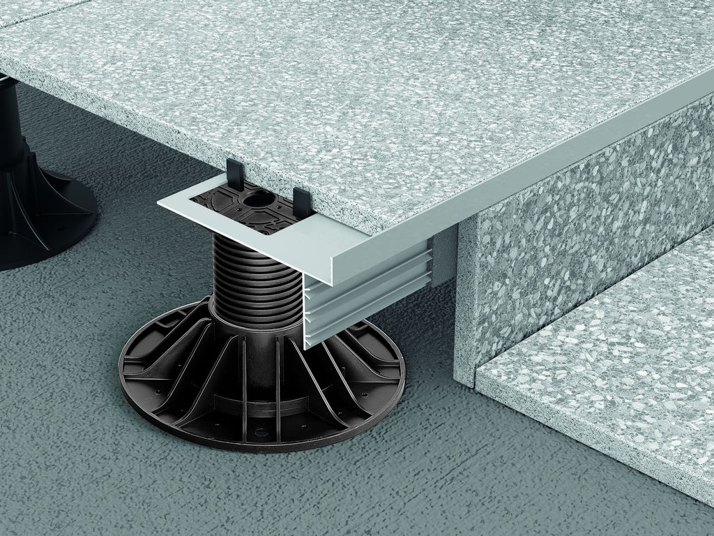 Il sistema è costituito da Prosupport Profile, provvisto di alette inclinate a coda di rondine e declinato in due modelli: Prosupport Profile N in alluminio naturale che rimane invisibile dietro il rivestimento e Prosupport Profile T in alluminio tranciato e verniciato che protegge e rifinisce il bordo esterno della pavimentazione sopraelevata grazie al profilo a vista di altezza 2 cm.