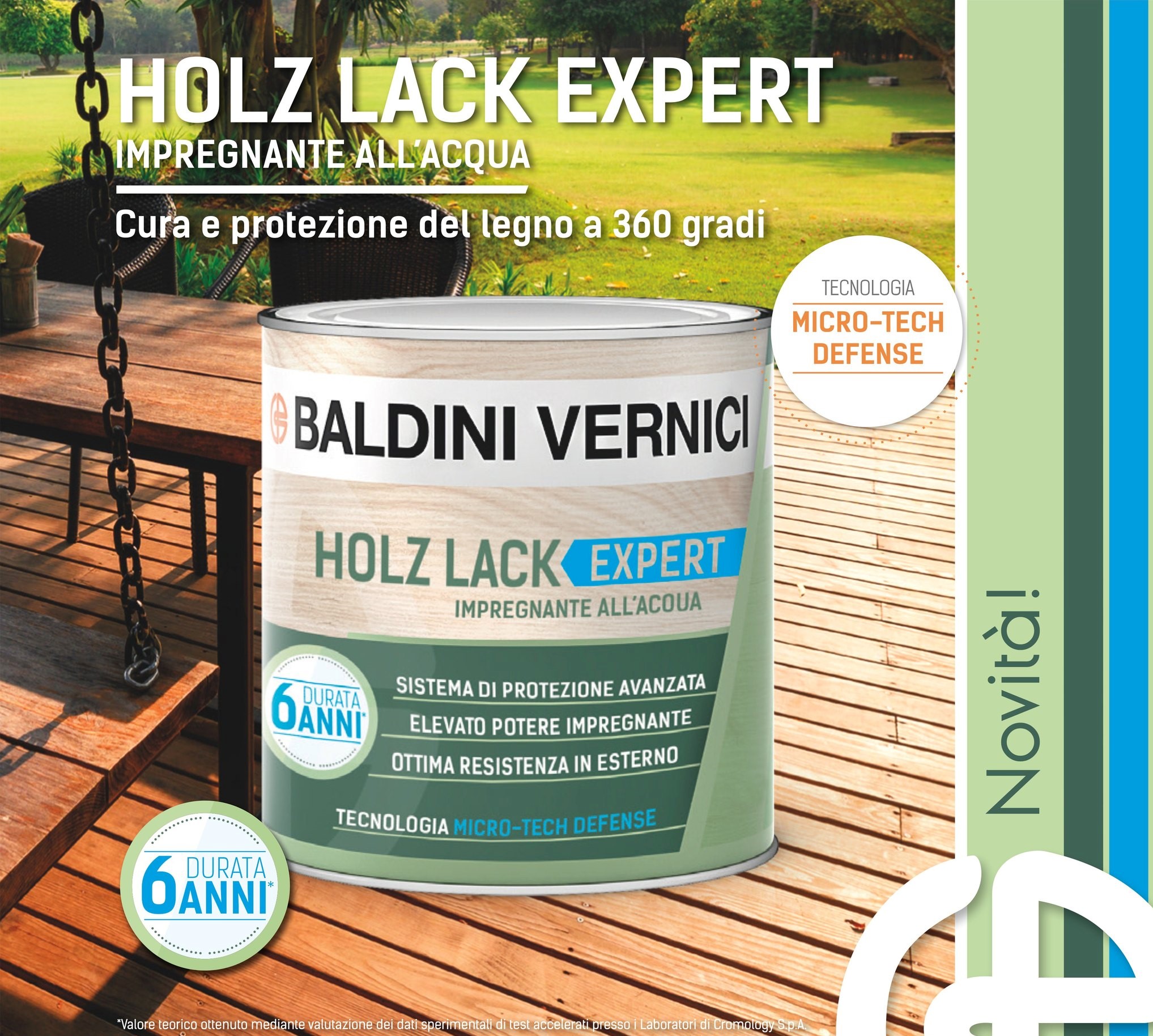 Baldini | Holz Lack Expert. Holz Lack Advance Impregnante a cera all’acqua. Contiene specifiche cere che rendono il legno idrorepellente e donano una finitura vellutata. I filtri Uv-absorber di nuova generazione contrastano l’azione degradante dei raggi solari. Holz Lack Advance è resistente alle intemperie e permette di proteggere il legno a lungo nel tempo, fino ad 6 anni