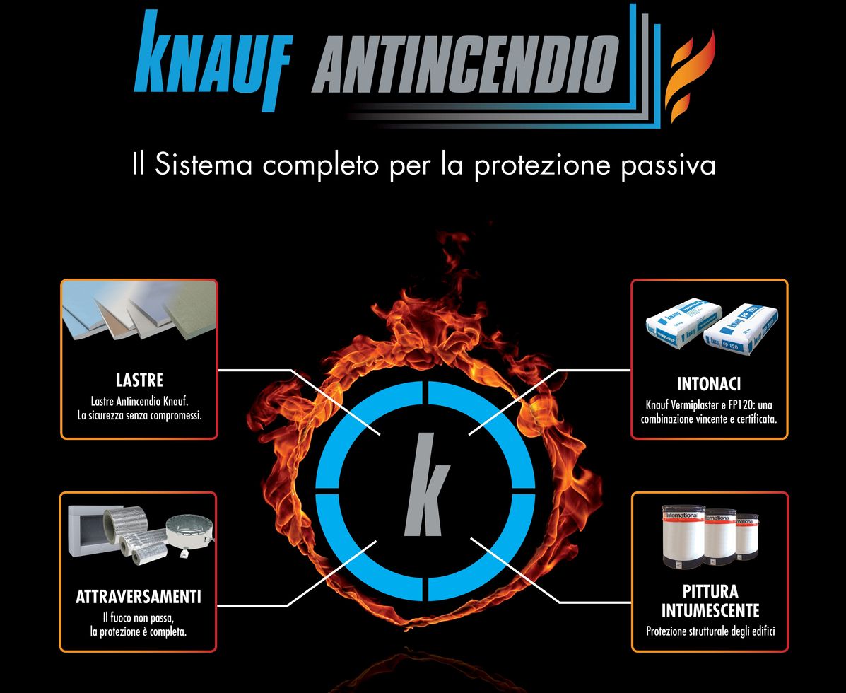«Il fuoco aggredisce ogni elemento dell’immobile e l’unico modo per contrastarlo è proteggere l’intero sistema costruttivo con un panel di soluzioni complete, sicure e certificate, capaci di garantire una protezione efficace, che non lasci al fuoco alcun possibile varco. L’apparato delle soluzioni Knauf Antincendio ha questa completezza: permette di realizzare pareti, rivestimenti, controsoffitti e cavedi protetti; permette inoltre di proteggere strutture in acciaio, condotte e impianti tecnologici. Ogni componente del Sistema Knauf Antincendio è severamente testato in laboratorio e accompagnato dalle certificazioni previste in tema di sicurezza antincendio».