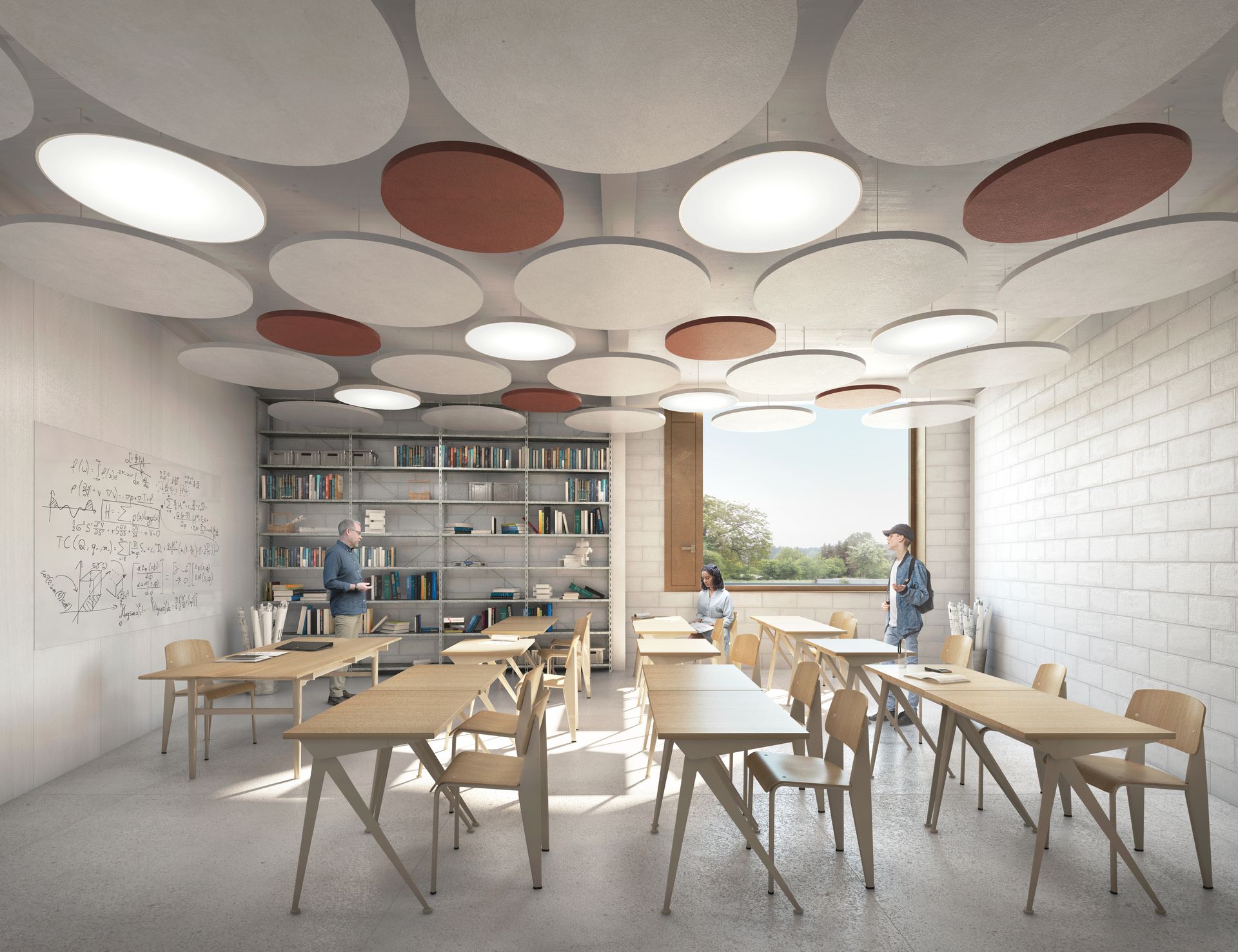 Questi ultimi, disposti al piano terra hanno il potenziale per diventare micro-incubatori chenin grado di connettere gli studenti alle industrie locali, grazie all’organizzazione di laboratori e attività da svolgere durante o dopo l’orario scolastico. Lo spazio della piazza interna al piano terra è stato pensato per gli studenti come luogo di incontro informale, dove trascorrere del tempo studiando, scambiando esperienze o semplicemente rilassandosi
