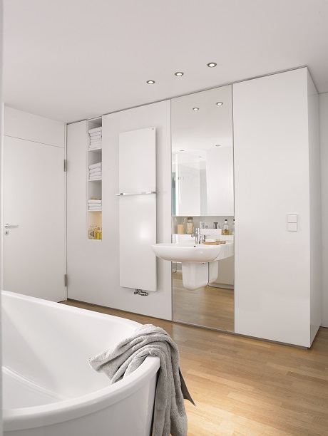 Design minimale, forma pura e immagine assoluta per un elemento adatto ai moderni sistemi a bassa temperatura, può funzionare mediante una pompa di calore ed e ideale anche collegato a un impianto di riscaldamento a pavimento.