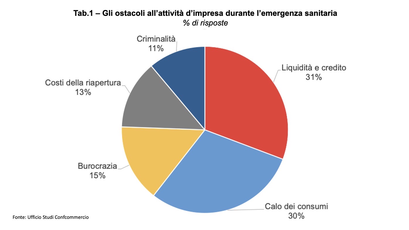 Il 30% delle risposte punta, invece, al tema dei costi: la solita burocrazia e le pure necessarie procedure di sanificazione, distanziamento, igienizzazione e altri protocolli di sicurezza che comunque costituiscono un incremento dei costi fissi dell’imprenditore.