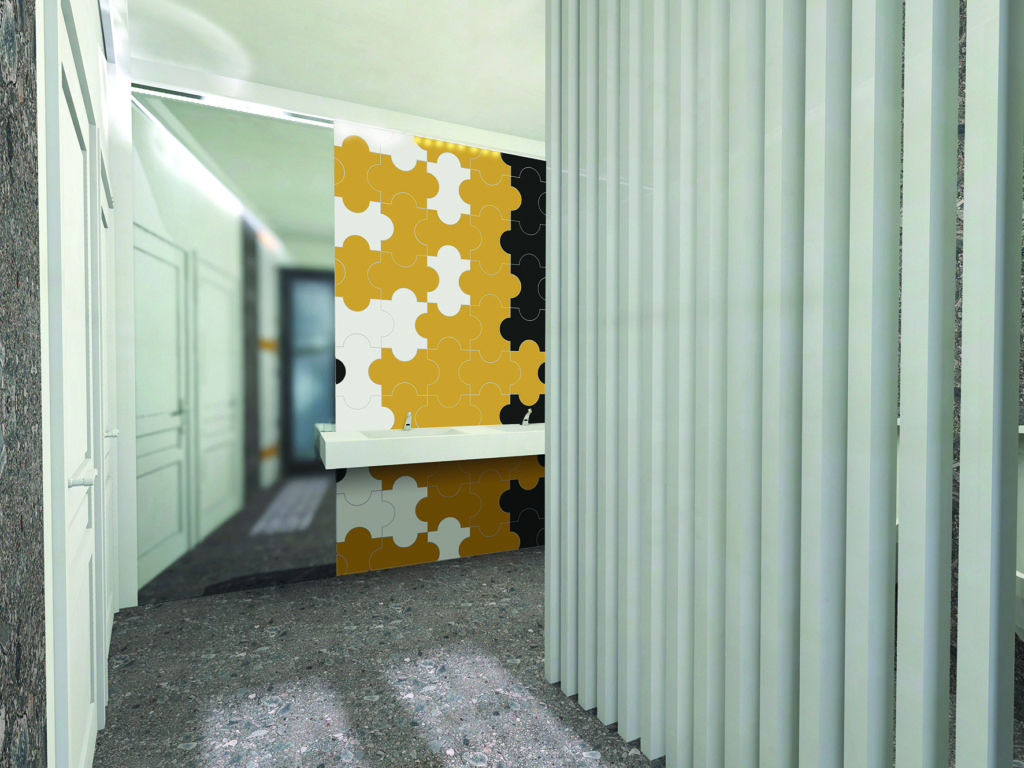 Nei 45 mq quadri disponibili sono stati ricavati un bagno per donne e disabili completamente attrezzato, un bagno solo uomini, un vano orinatoi e un lavamani spazioso. Per il rivestimento si è scelta la serie cult di Marazzi disegnata da Giò Ponti per la Triennale di Milano nel 1960: una piastrella 4 volte curva che rappresenta un dialogo aperto tra storia e futuro, design e produzione industriale, forma e materia, arte e architettura. Saranno, inoltre, rifatti ex novo l’impianto delle luci, quello idraulico e idrosanitario. L’ingresso sarà dislocato e reso più largo per consentire l’accessibilità al fruitore diversamente abile e, al tempo stesso, rendere lo spazio comune meno angusto per trasmettere maggiore tranquillità di utilizzo all’utenza femminile.