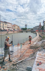 «Il progetto preliminare, che prevedeva tra l’altro, la realizzazione di circa 130 micropali alla profondità di 22 metri mediante carotaggio del muro di sponda, presentava un’eccessiva invasività dal punto di vista ambientale, paesaggistico, cantieristico e strutturale. Si è così individuata una seconda soluzione che utilizzando le tecnologie Deep Injections e Walls Restoring ha consentito di consolidare efficacemente il muro di sponda garantendo il minimo impatto ambientale e i minori rischi per le costruzioni storiche adiacenti e per i paramenti murari stessi».