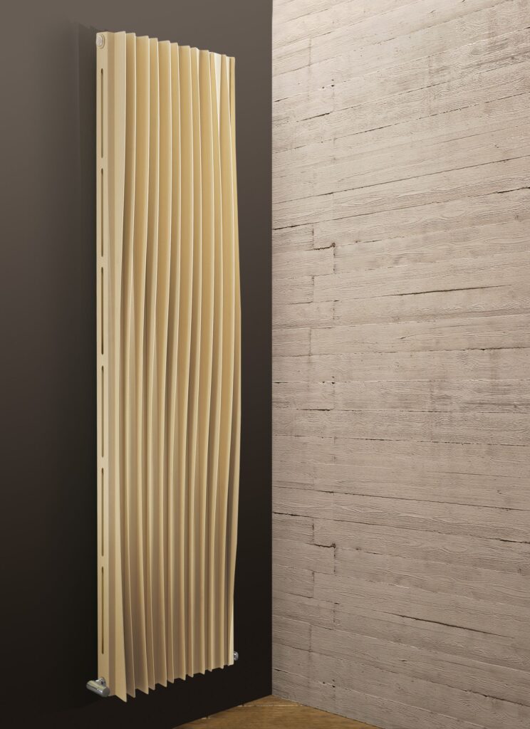 Le sue forme dinamiche e lievemente ondulate rimandano alle corde di un’arpa (da cui il nome) che sembra prendere vita in un armonioso gioco di luci e ombre grazie alla tridimensionalità e alla disposizione asimmetrica delle alette che compongono il radiatore.
