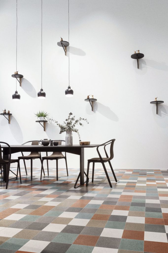 Abitare evoca l’artigianalità dei prodotti originariamente fatti a mano, dove polvere e graniglie di marmo erano miscelati con i cementi fortemente pressati. Un’autentica celebrazione del bello e del saper fare, che valorizza il recupero di decorazioni appartenenti al passato.