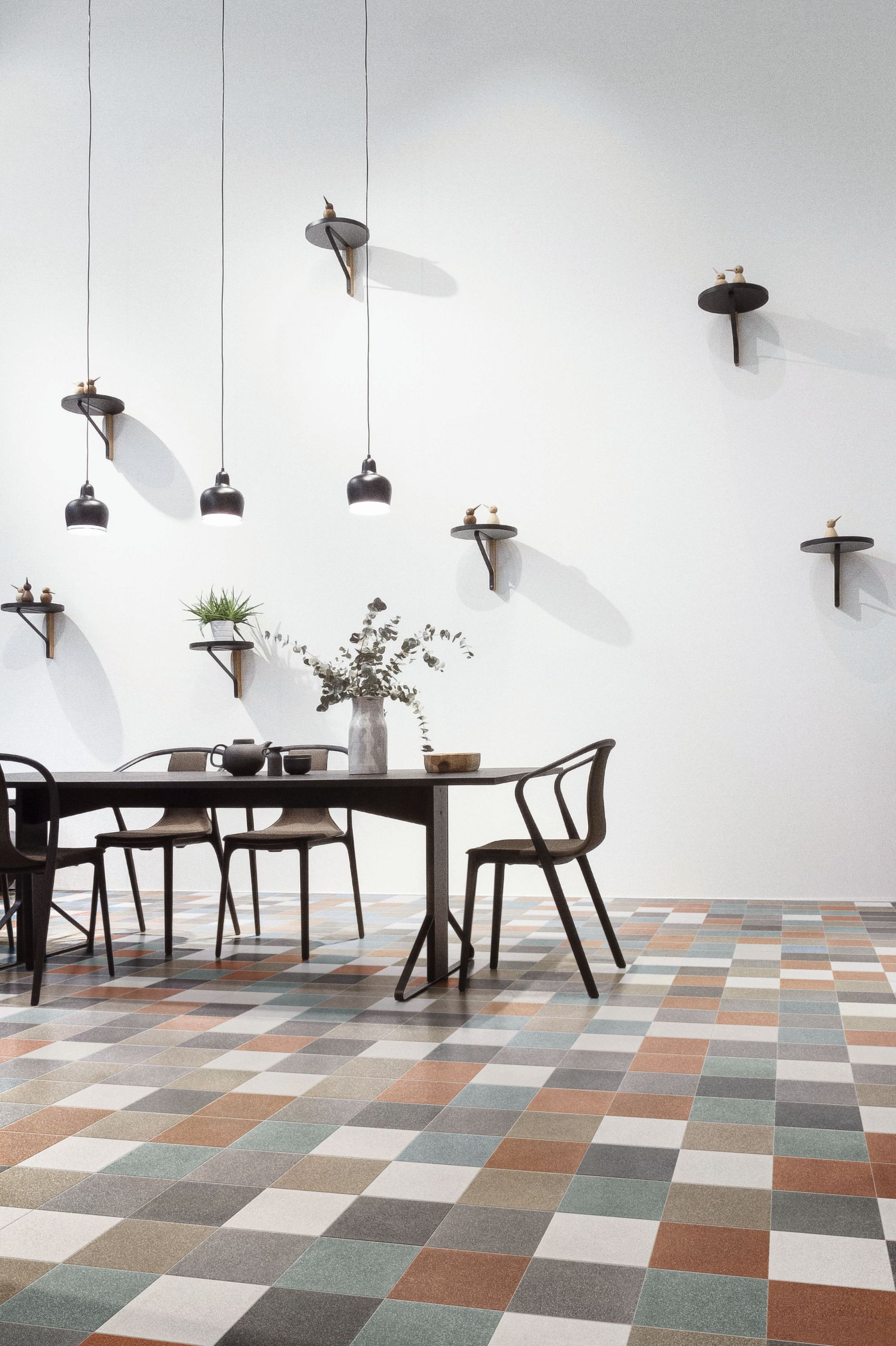 La collezione offre un’accurata selezione di 8 tappeti decorativi e modulari ed un decoro mix, tipici del panorama delle graniglie. Proposte versatili abbinabili alle tinte unite in gamma o a materie differenti come legno, pietra e cemento, per rivestire intere superfici o aree delimitate di contesti residenziali e commerciali.