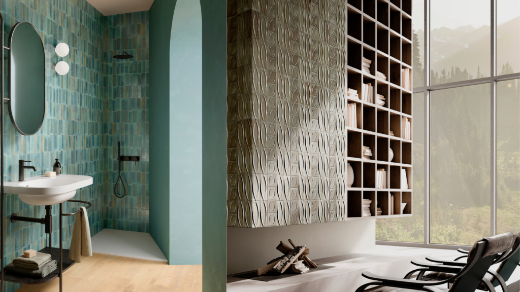 La palette di cinque colori prevede le tonalità del bianco, beige, turchese, giada e grigio. I formati disponibili sono tre: 10×010, 5×15 e 7,5x20cm modulari tra loro e con bordi dritti per soluzioni di posa nuove e inedite.