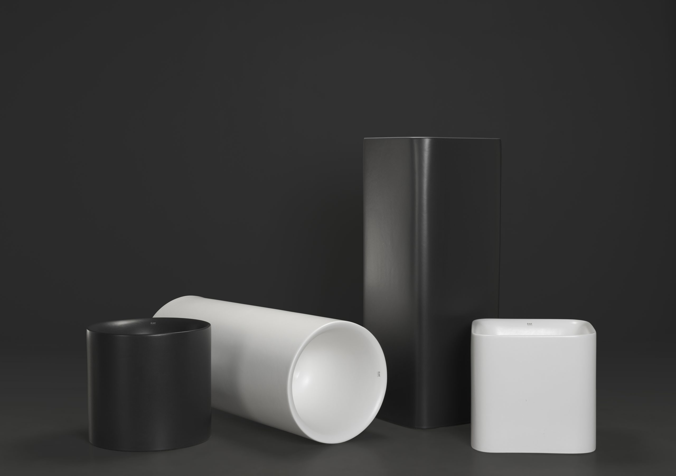 Il lavabo freestanding e il top alto sono ora disponibili in entrambe le forme Round e Square, in 3 diverse finiture: Bianco lucido, Bianco opaco e Nero opaco.