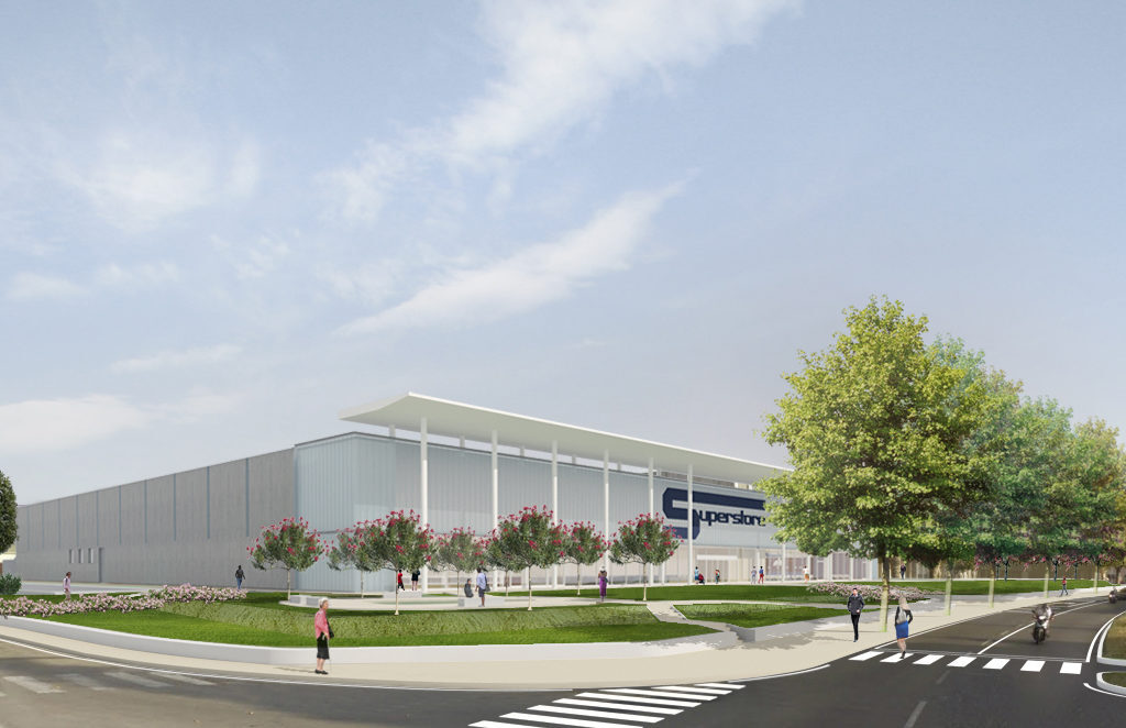 Il Superstore, progettato dallo Studio Nonis e che verrà ultimato a luglio 2021, si sviluppa su una superficie di 8.000 mq di cui metà dedicati all’area vendita. I tradizionali mattoni rossi in facciata vengono qui sostituiti da elementi di acciaio e vetro: le ampie vetrate del negozio, trasparenti alla base e dall’effetto opaco nella parte superiore, creano un gioco di luminosità e trasparenza che reinterpreta l’altra tradizionale facciata degli store con rivestimento a doghe metalliche bianche.