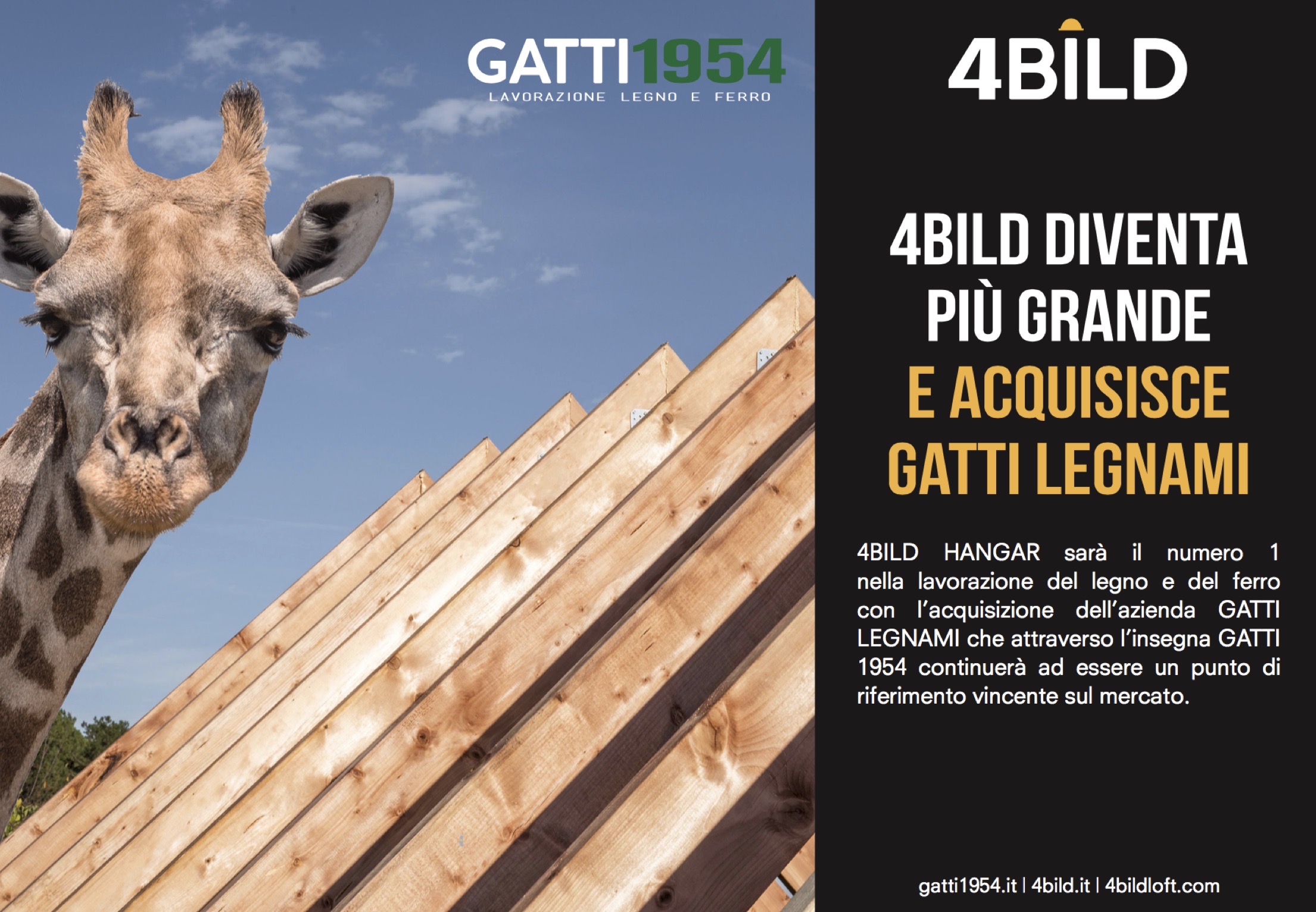 Ulteriore novità, è l’acquisizione da parte di 4Bild di Gatti1954, un’azienda che è sempre stata un riferimento presso la clientela professionale della Lombardia nella importazione e lavorazione di legnami, con una produzione di tetti ed elementi strutturali in legno.