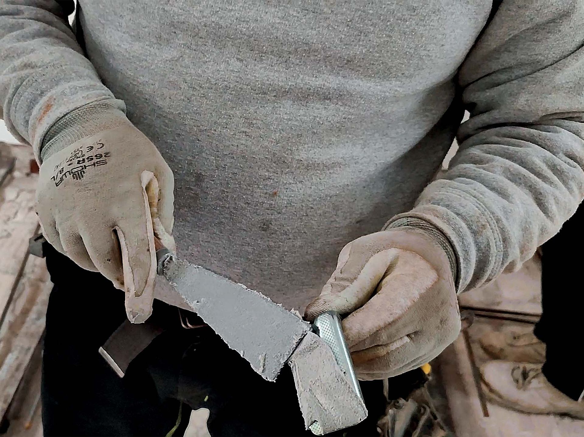 Il fissaggio di Connettore Acciaio Incollato alle putrelle in acciaio avviene direttamente con incollaggio alle travi con l’Adesivo Connettore Acciaio direttamente sulla parte puntinata del connettore tramite l’ausilio di una spatola e una leggera pressione per la creazione di uno strato uniforme di resina tra le due parti. Il sistema prevede la realizzazione della soletta mista collaborante armata in calcestruzzo strutturale leggero Leca dopo 24 ore dalla stesura dell’adesivo. A questo scopo, nell’intervento su Palazzo Zappalà Tornabene hanno trovato impiego Leca CLS 1400 e Leca CLS 1600, due calcestruzzi leggeri strutturali premiscelati in sacco idonei alla realizzazione di getti di rinforzo e solette collaboranti.