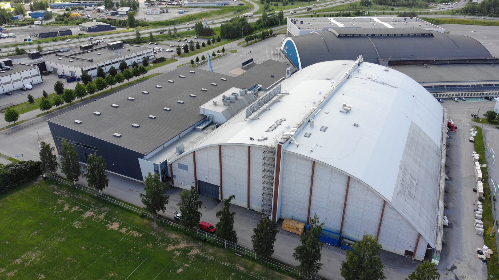Costruito nel 1985, uno degli edifici del centro multifunzionale di Tampere aveva bisogno di una nuova copertura. È stato quindi necessario procedere per fasi, rimuovendo piccole porzioni di membrana e sostituendole immediatamente con la membrana Renolit Alkorplan F Classic. Le vecchie membrane tagliate non sono state però smaltite in discarica o incinerate, come da prassi in Finlandia, ma dopo essere state tagliate e confezionate, sono state trasportate in un impianto di riciclaggio in Sassonia.