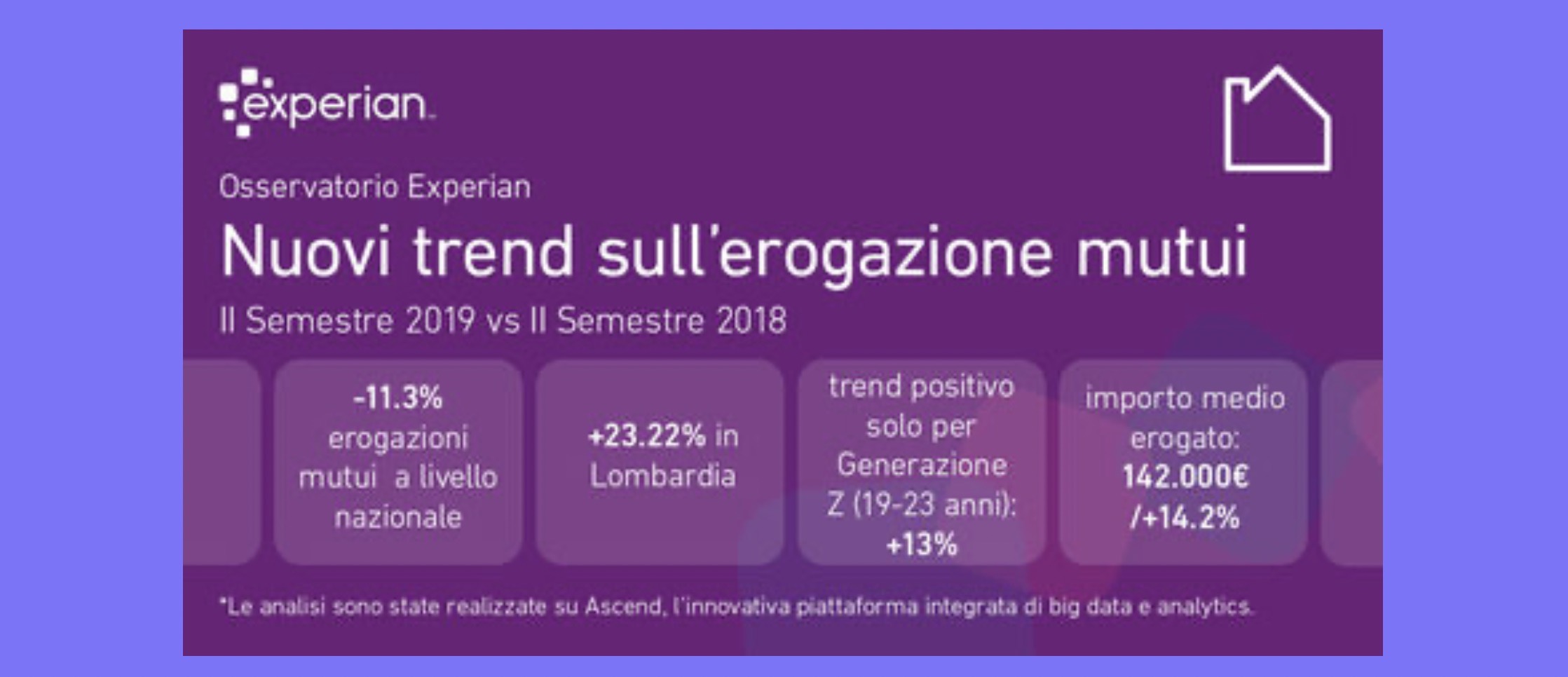 Lo studio analizza i nuovi mutui immobiliari erogati nel secondo semestre 2019 in relazione a quelli erogati nel secondo semestre 2018, e si basa sui dati disponibili nel Sistema di Informazioni Creditizie gestito da Experian, che raccoglie oltre 80 milioni di posizioni creditizie.