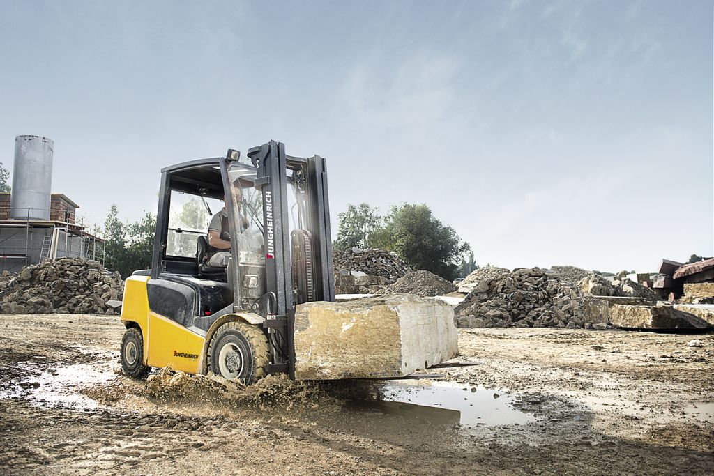 VFG_0076_High Res_12393Prestazioni elevate, efficienza energetica e produttività. Jungheinrich Italiana punta su queste caratteristiche per la nuova gamma di carrelli idrodinamici che assicura elevati standard di affidabilità ed è pensata per sopportare carichi pesanti, in situazioni climatiche sfavorevoli o in attività particolarmente difficoltose. La linea, dunque, ben si adatta alle esigenze delle aziende che si trovano a gestire carichi impegnativi e che devono movimentare merci ingombranti, come nel settore edile caratterizzato da progetti articolati la cui attività implica anche spostamenti su lunghe distanze. L’edilizia rappresenta un esemplificativo modello di applicazione degli idrodinamici di Jungheinrich anche in riferimento alle caratteristiche di robustezza e affidabilità della serie: questi carrelli infatti riescono a mantenere un nuon grado di stabilità anche su tratti di strada con pavimentazione sconnessa o danneggiata.