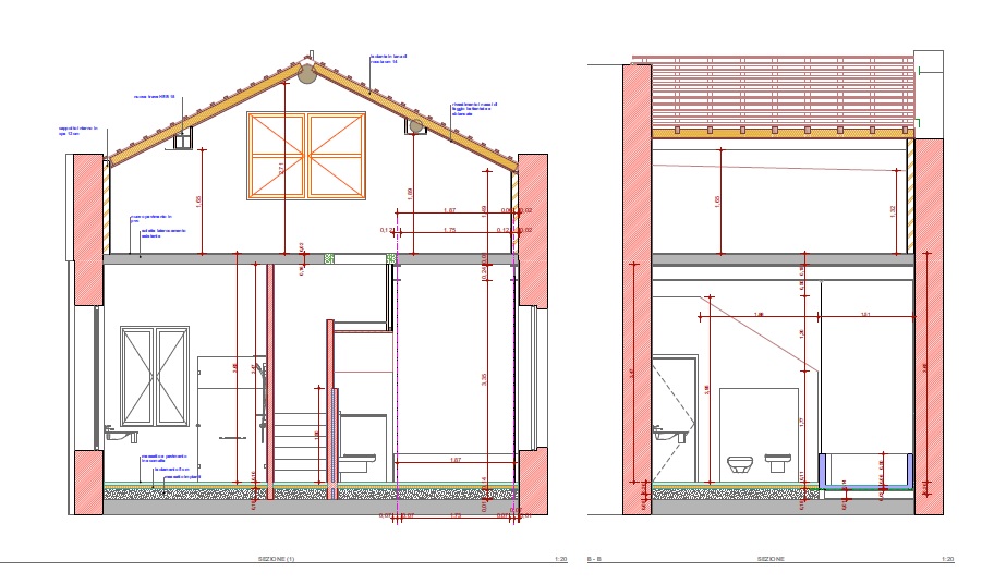 L’intervento ha previsto l’inserimento di lana di roccia e la struttura di orditura secondaria rivestita con tavole di abete battentate in modo da garantire i fenomeni di flessione di un tetto in legno.